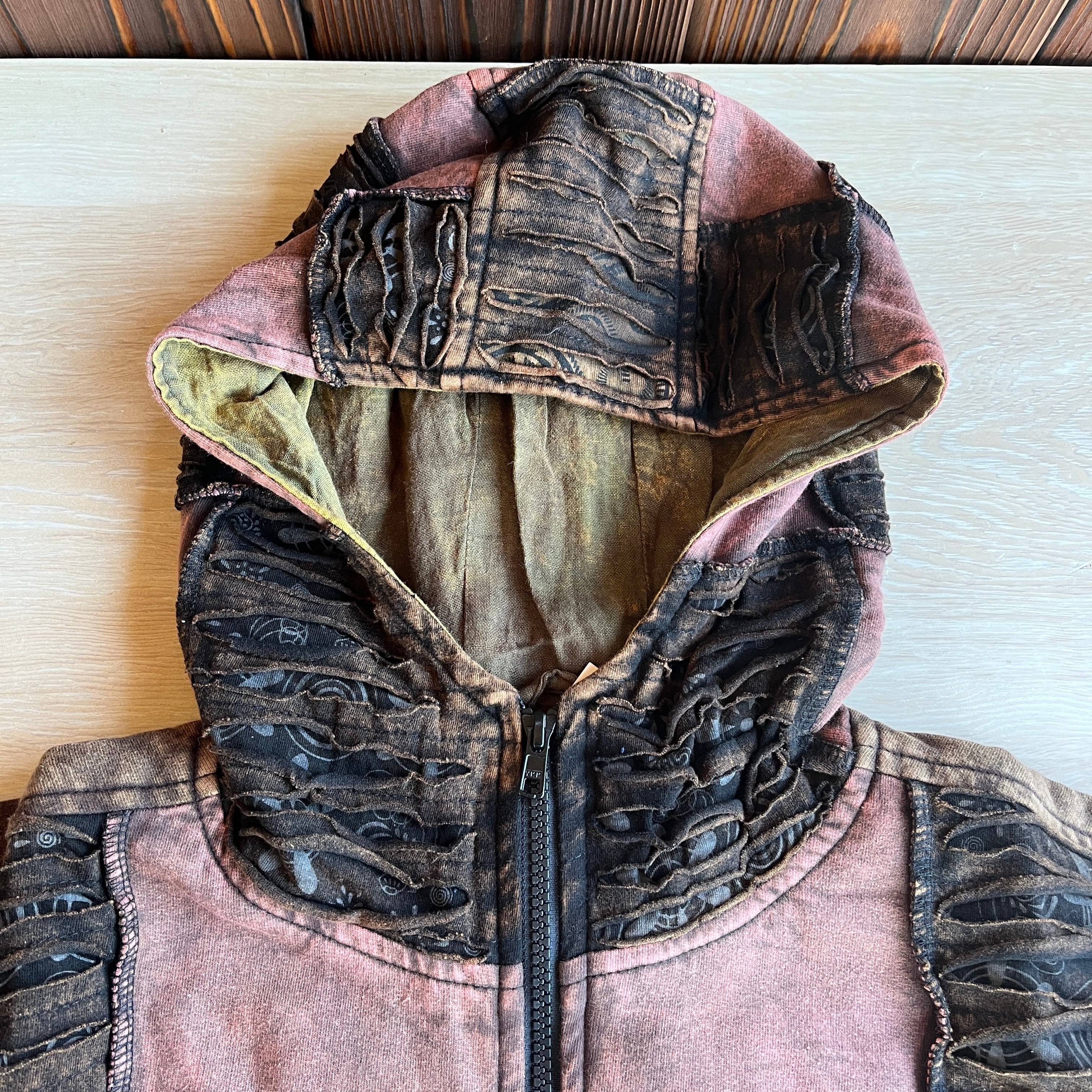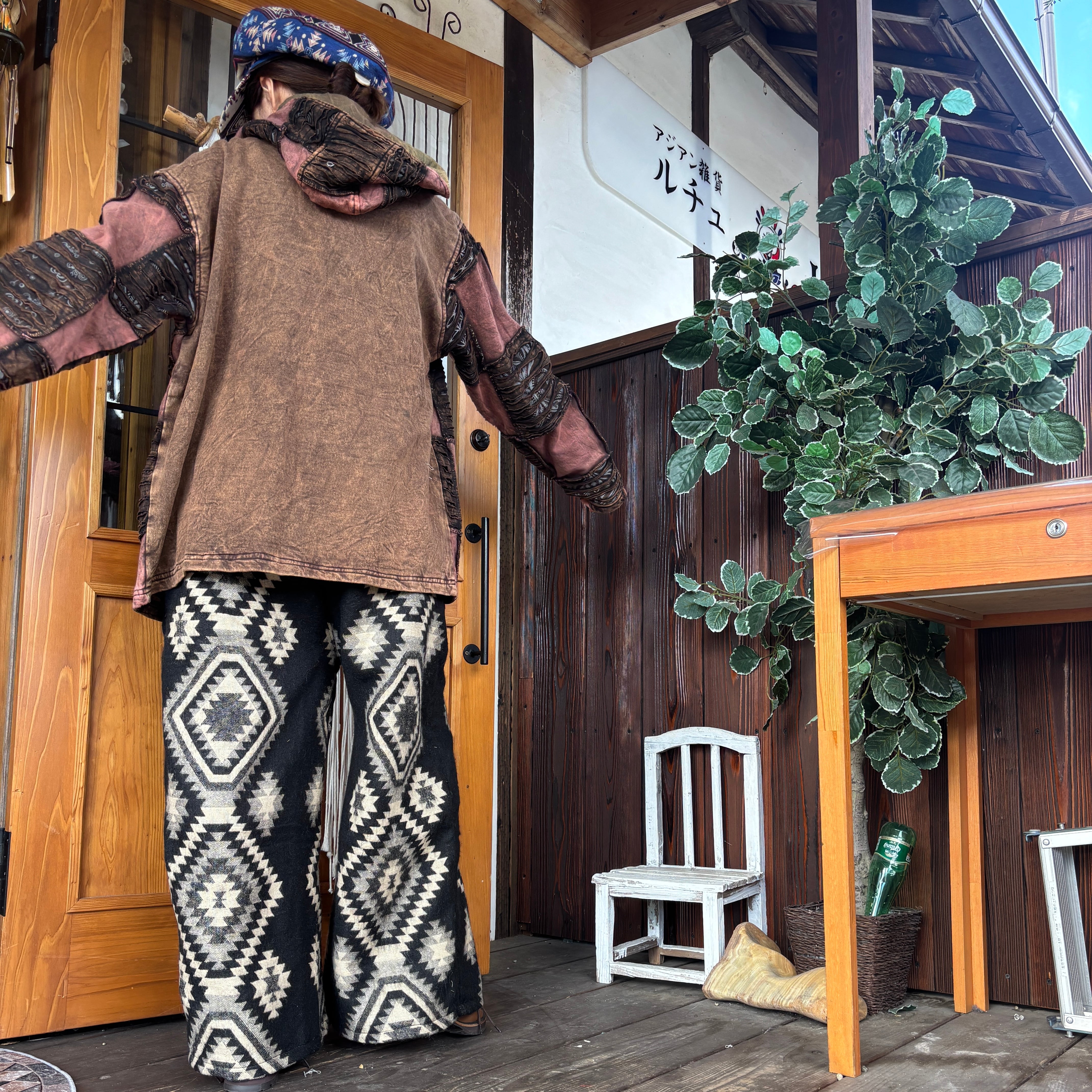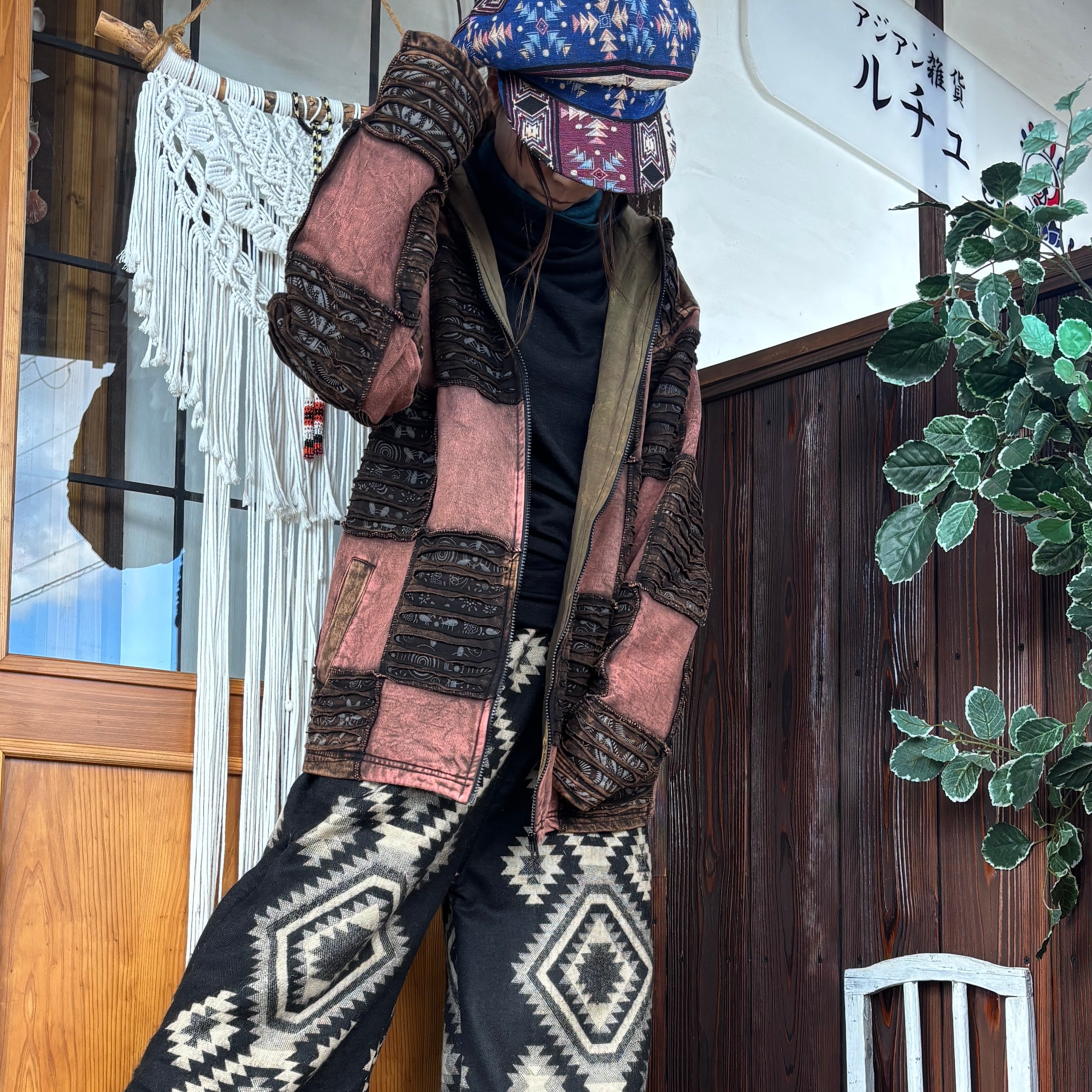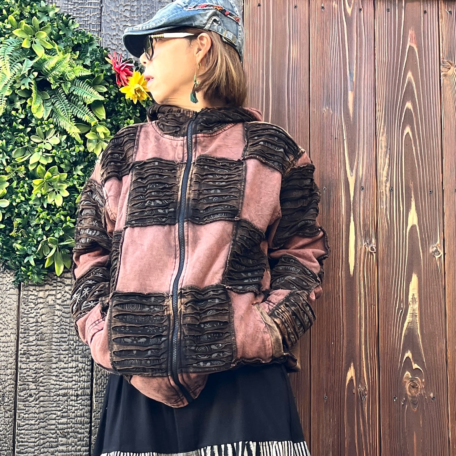 しっかりとしたコットン素材で作られたパッチワークパーカー。