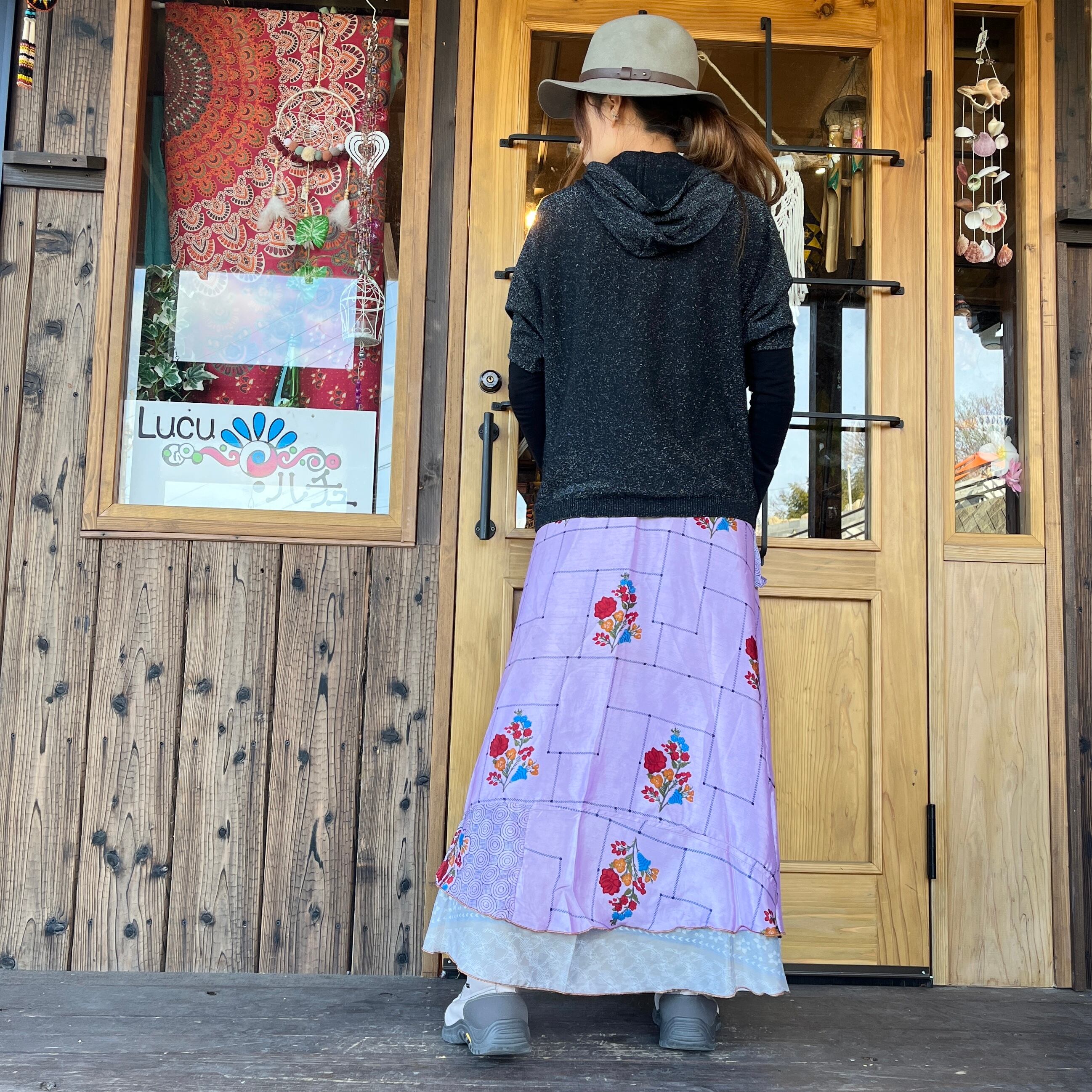一枚で2通りのコーデが楽しめる、リバーシブルインドサリー巻きスカートです。