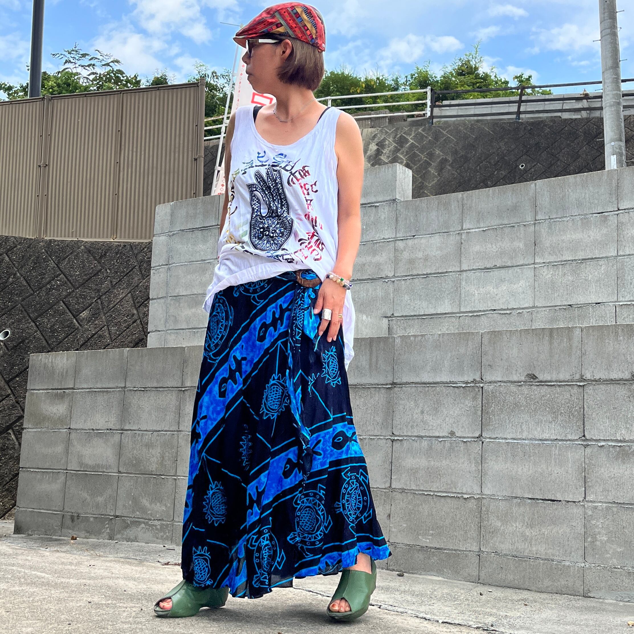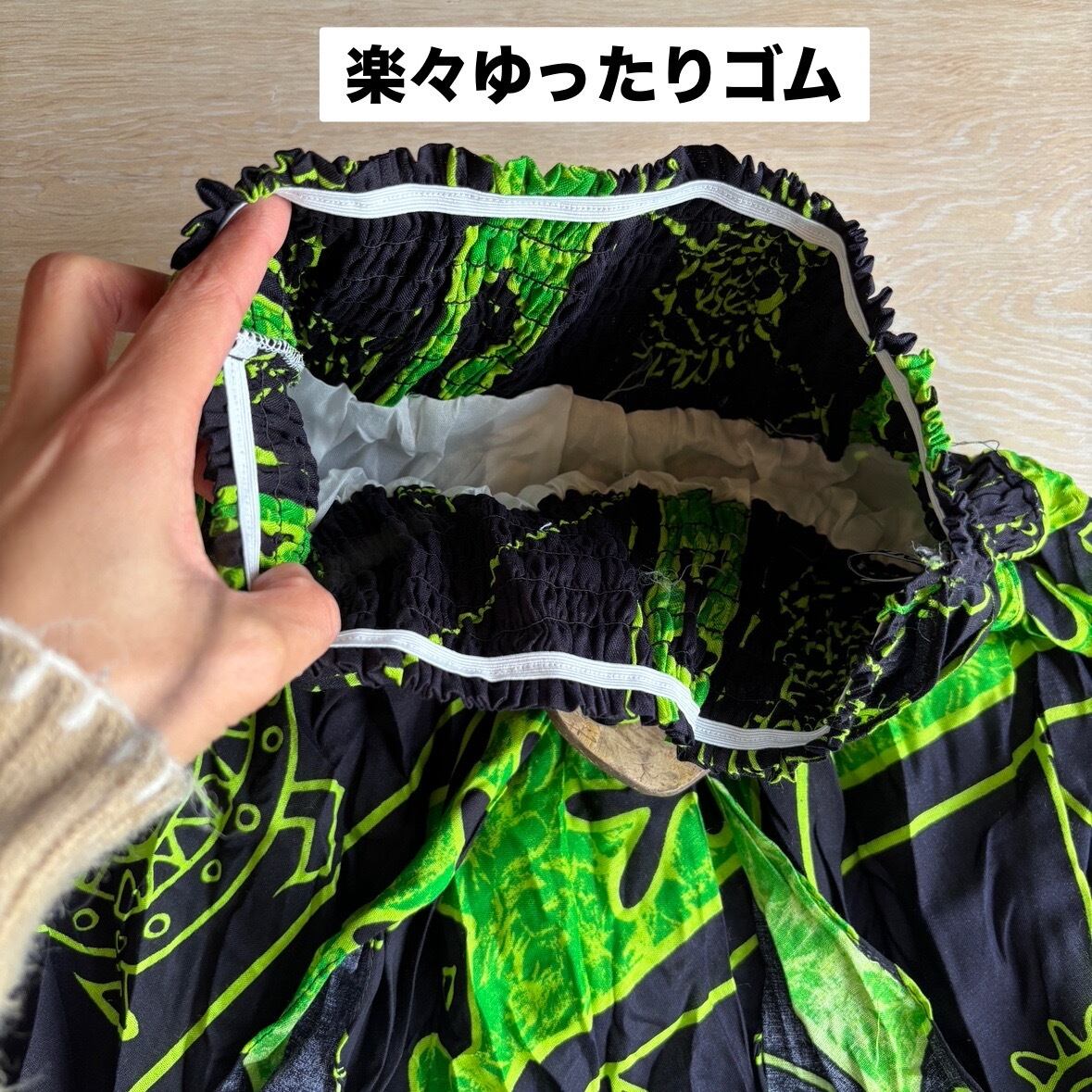 ウエストはフリーサイズのゴムとココナッツクリップ付きで細い方はクリップをきつめに閉めてください。