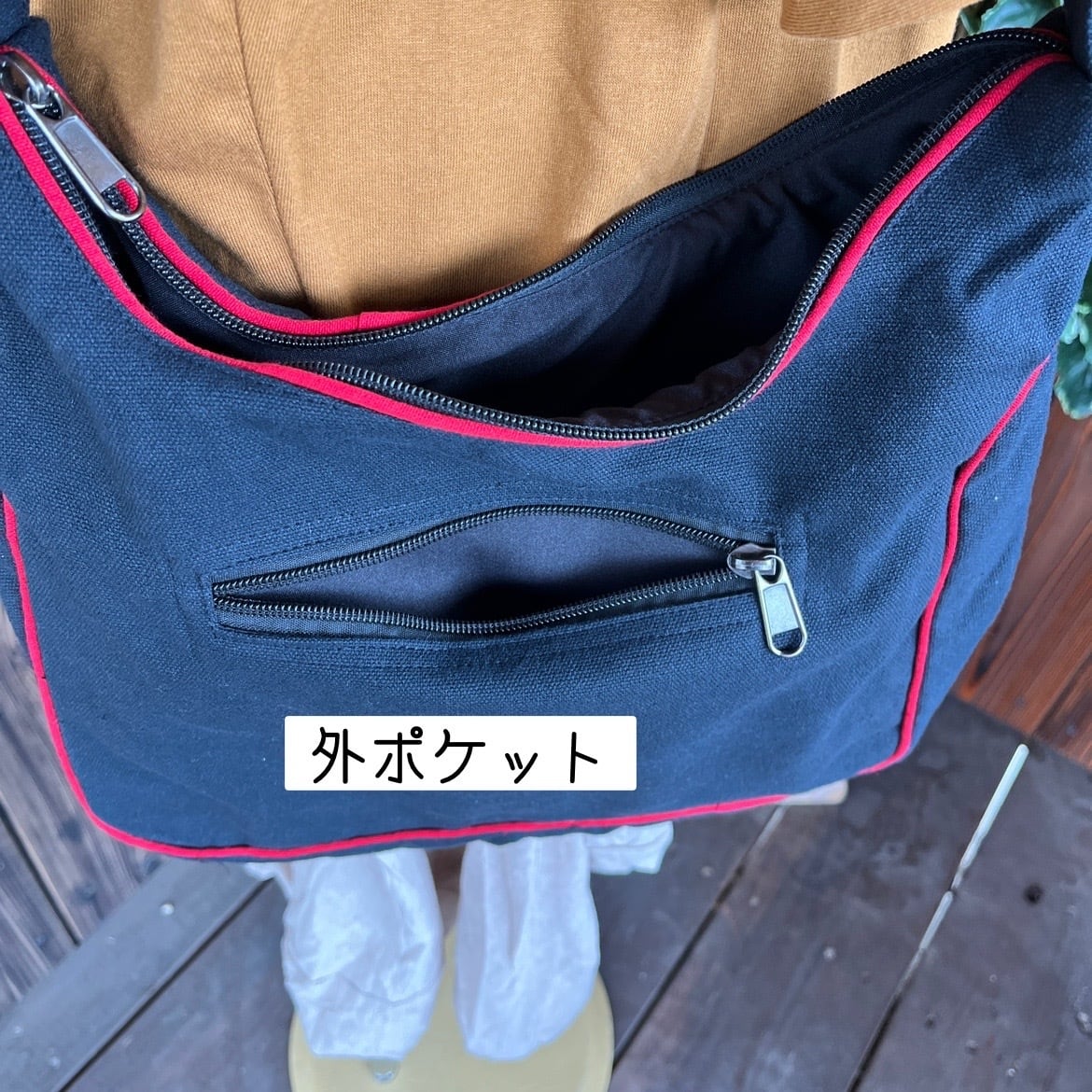 メイン収納以外に後ろ側に大きなポケットがついておりとても便利☆