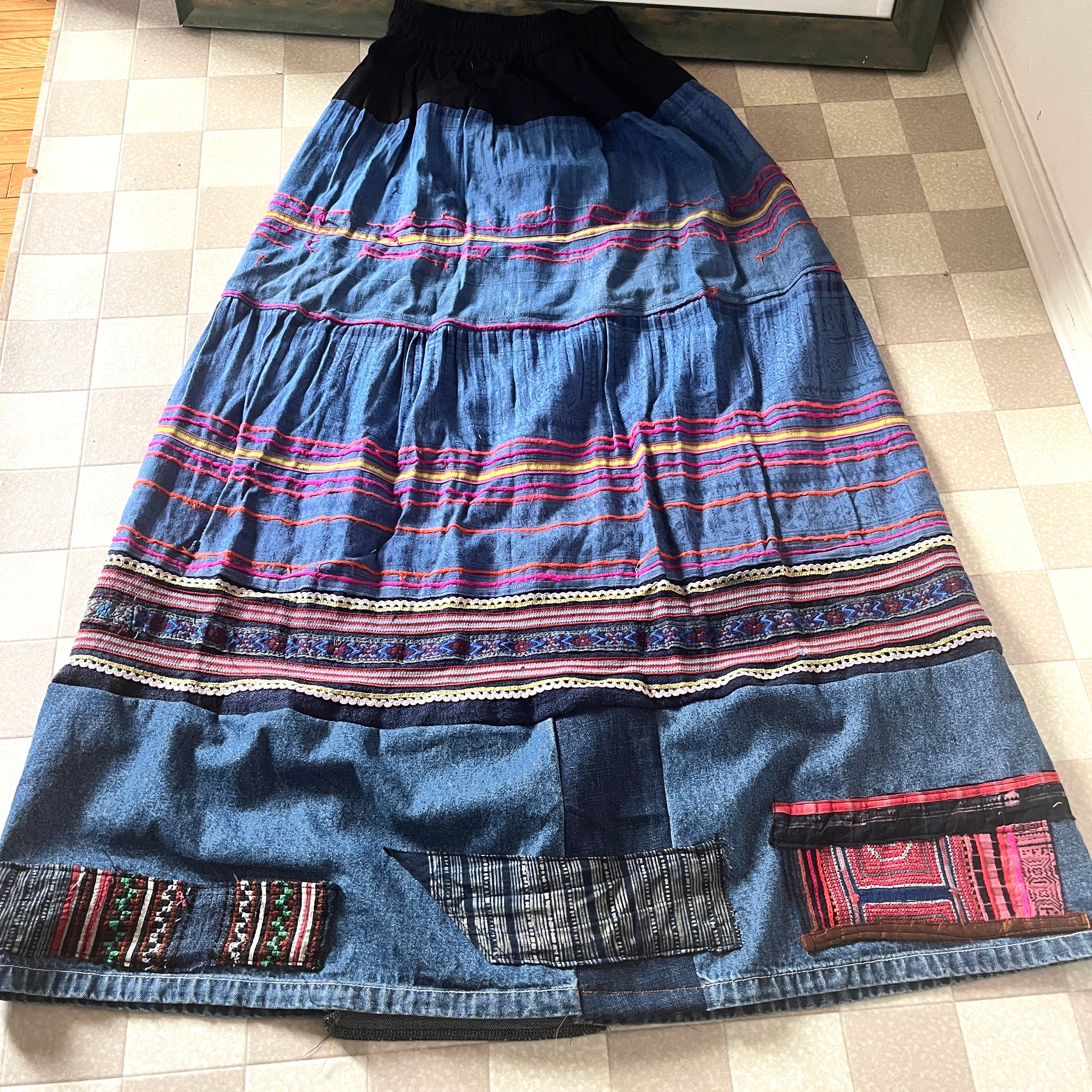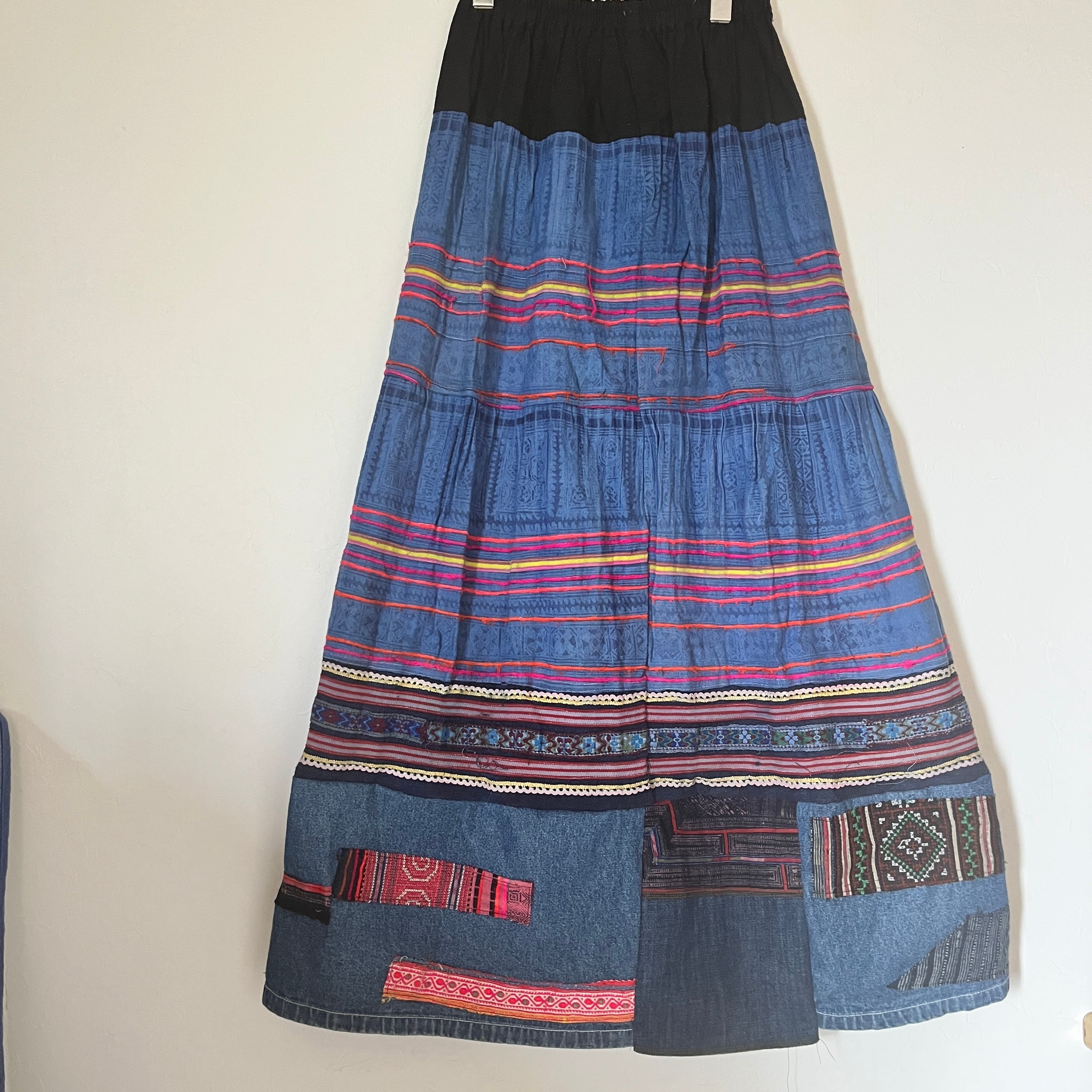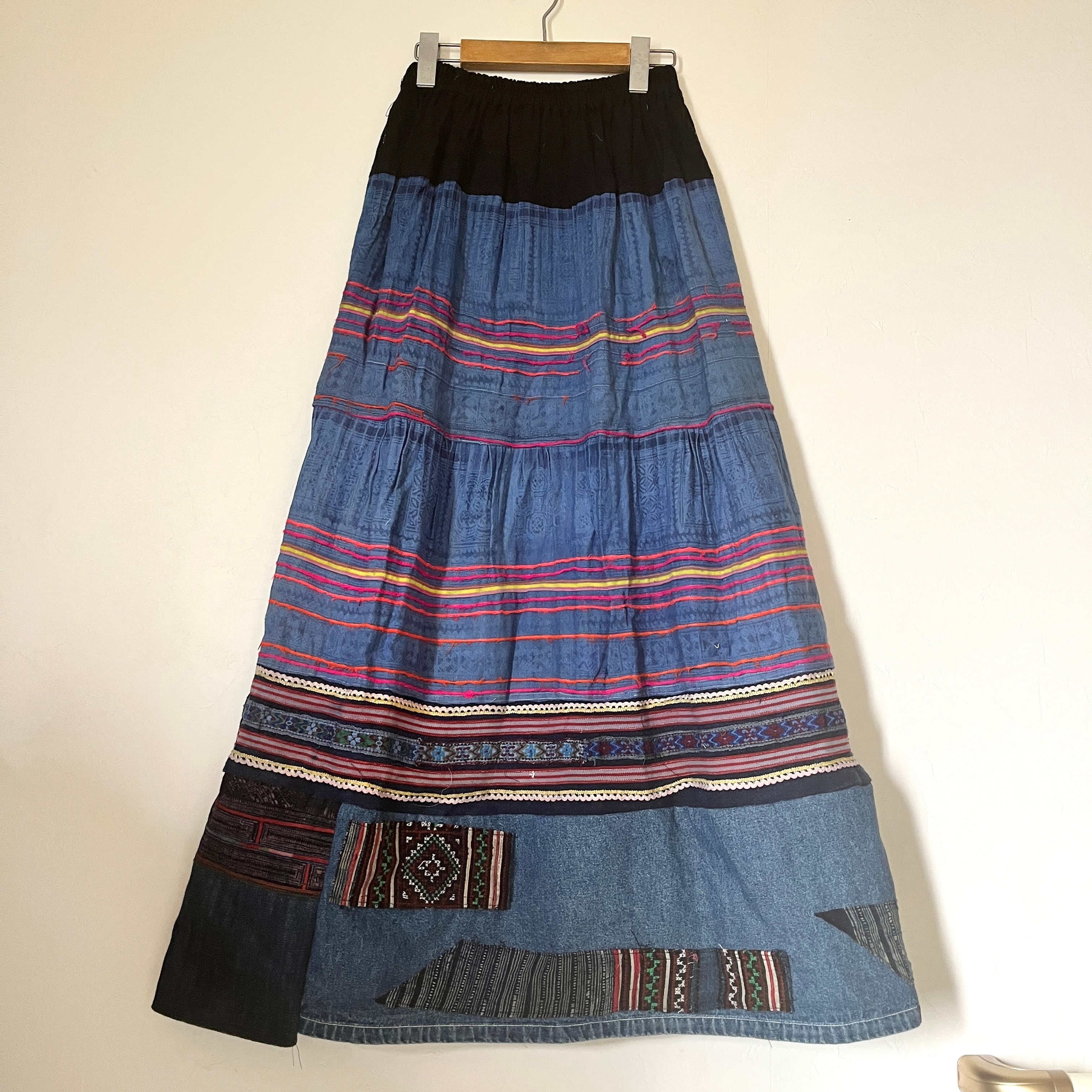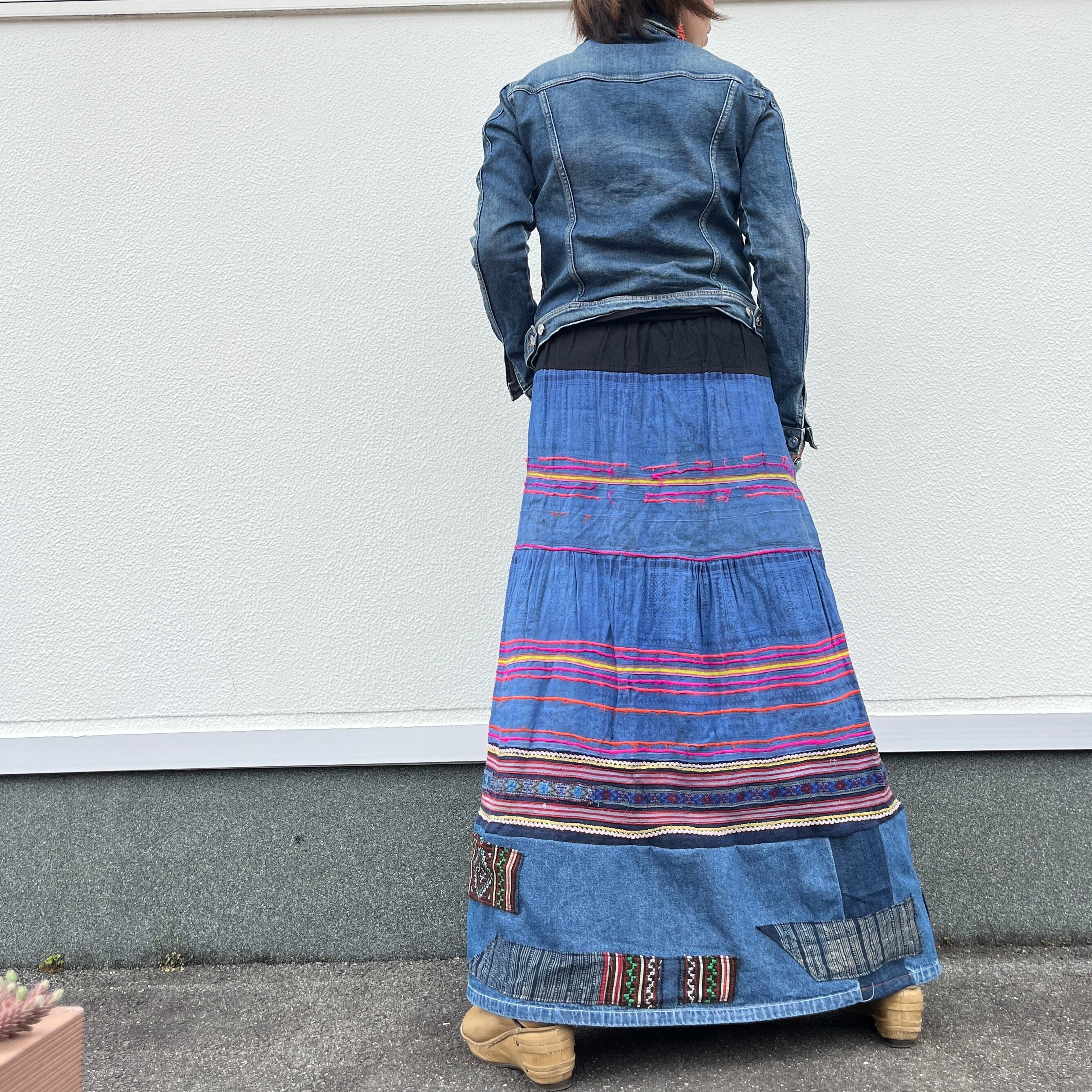 モン族刺繍andデニムがレアなたっぷりなロングスカート!