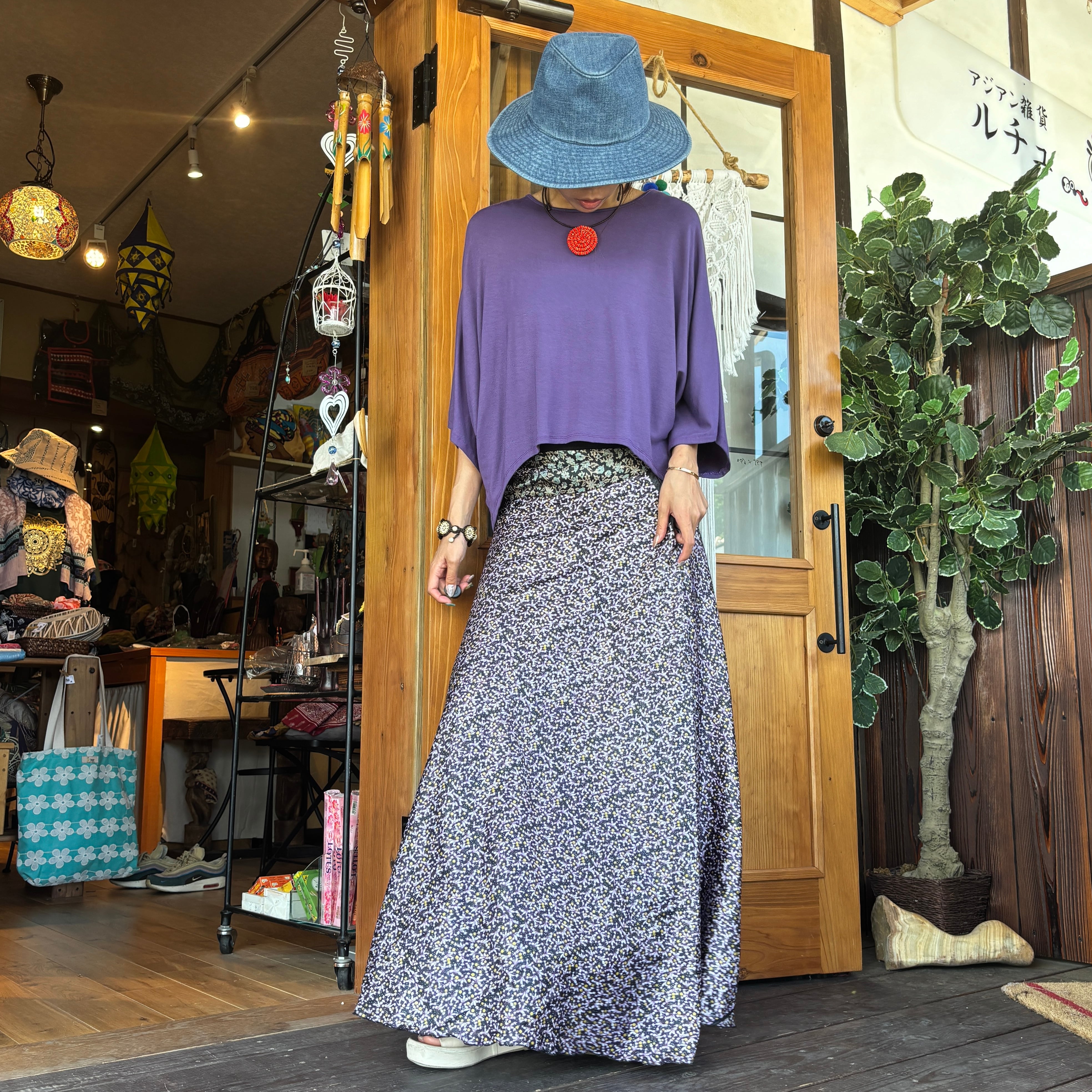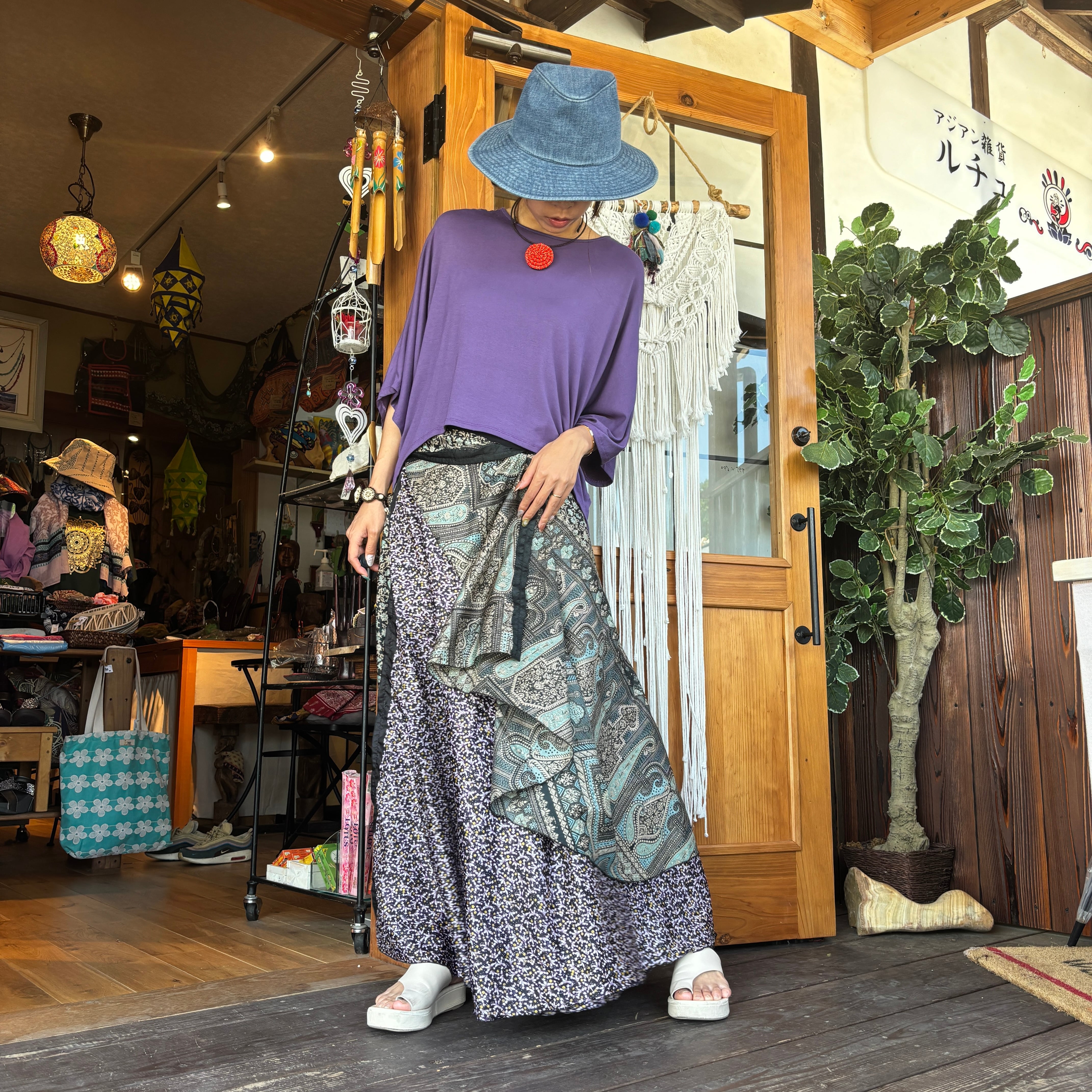 一枚で2通りのコーデが楽しめる、リバーシブルインドサリー巻きスカートです。
