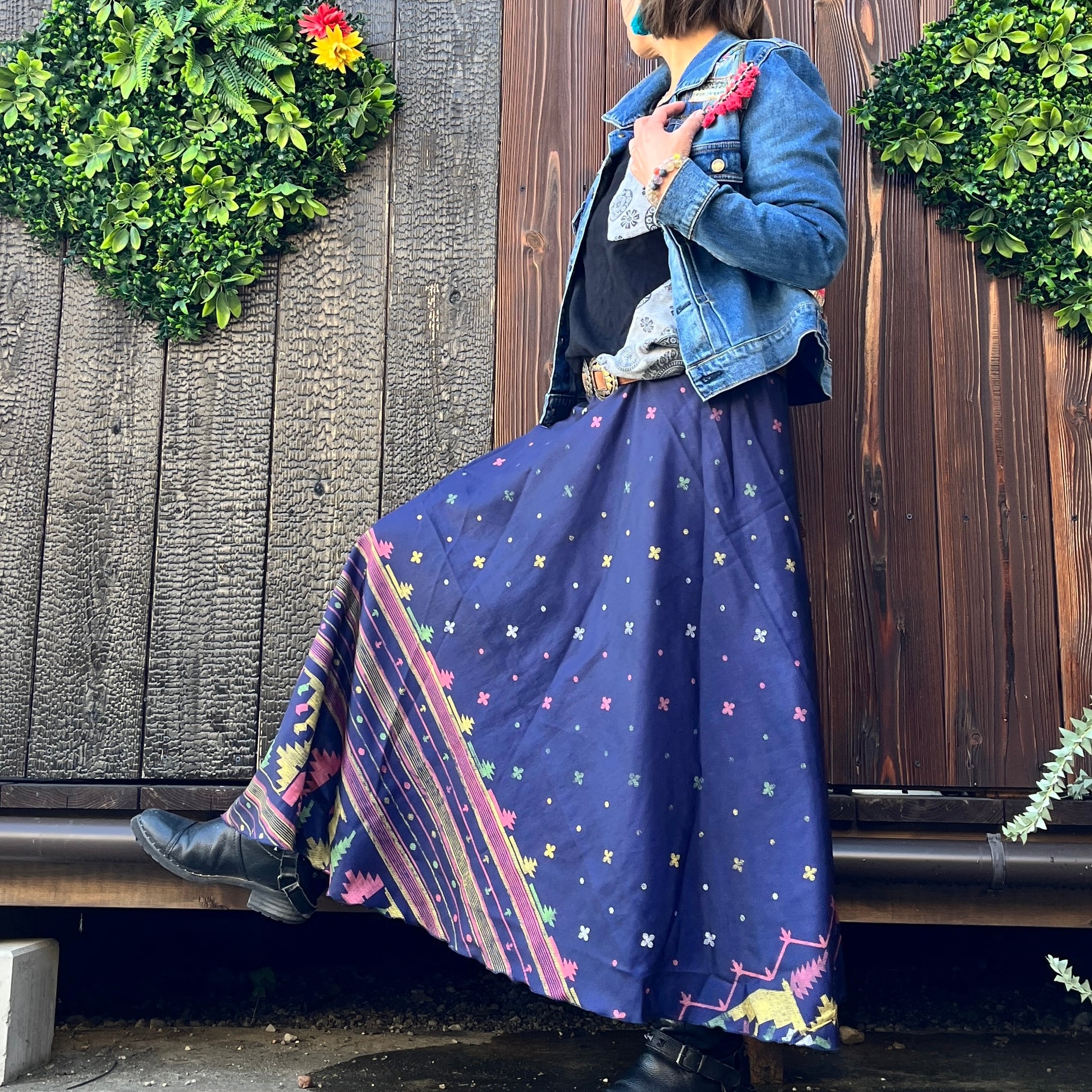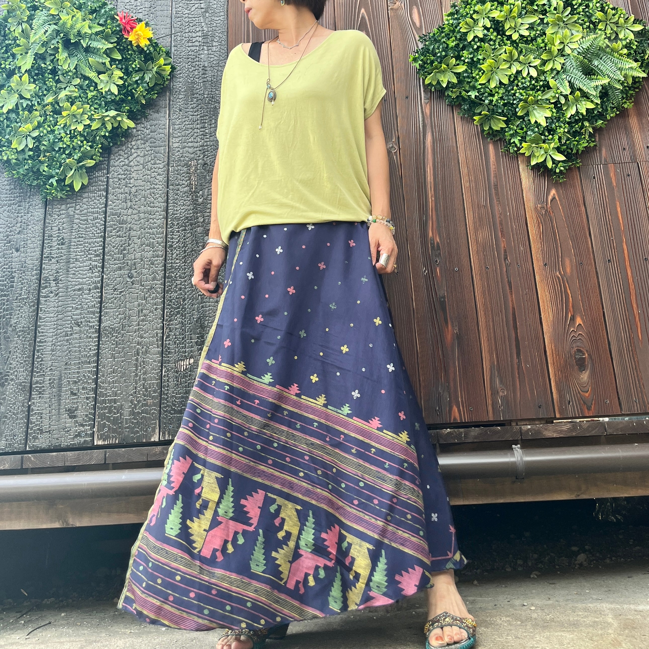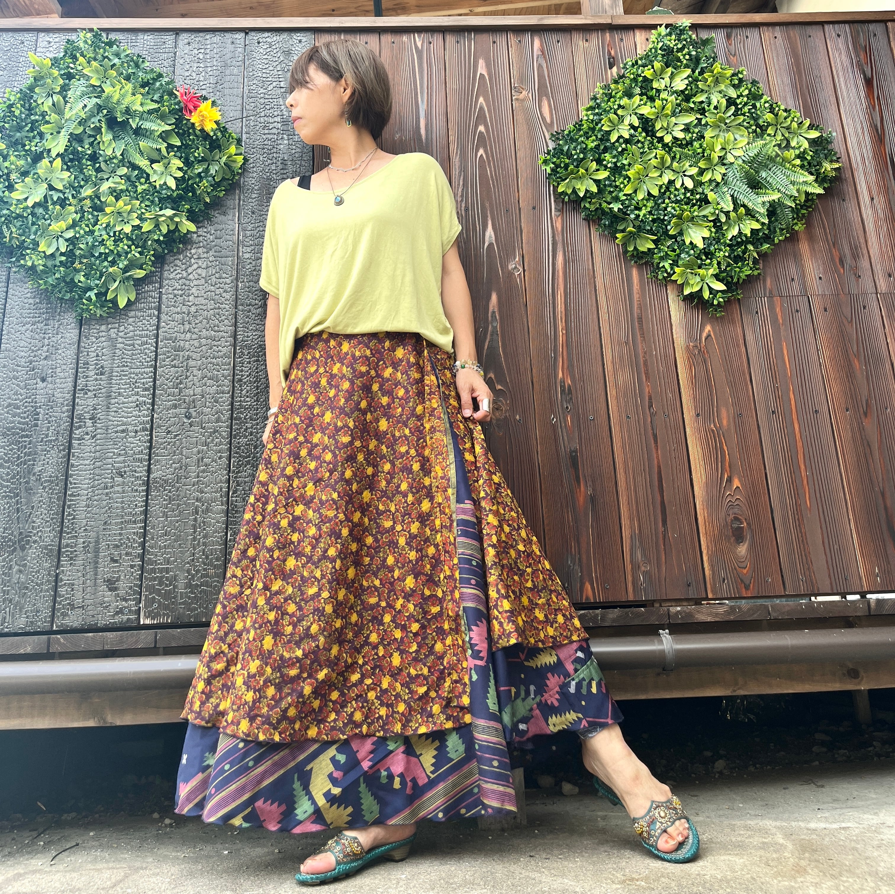一枚で2通りのコーデが楽しめる、リバーシブルインドサリー巻きスカートです。