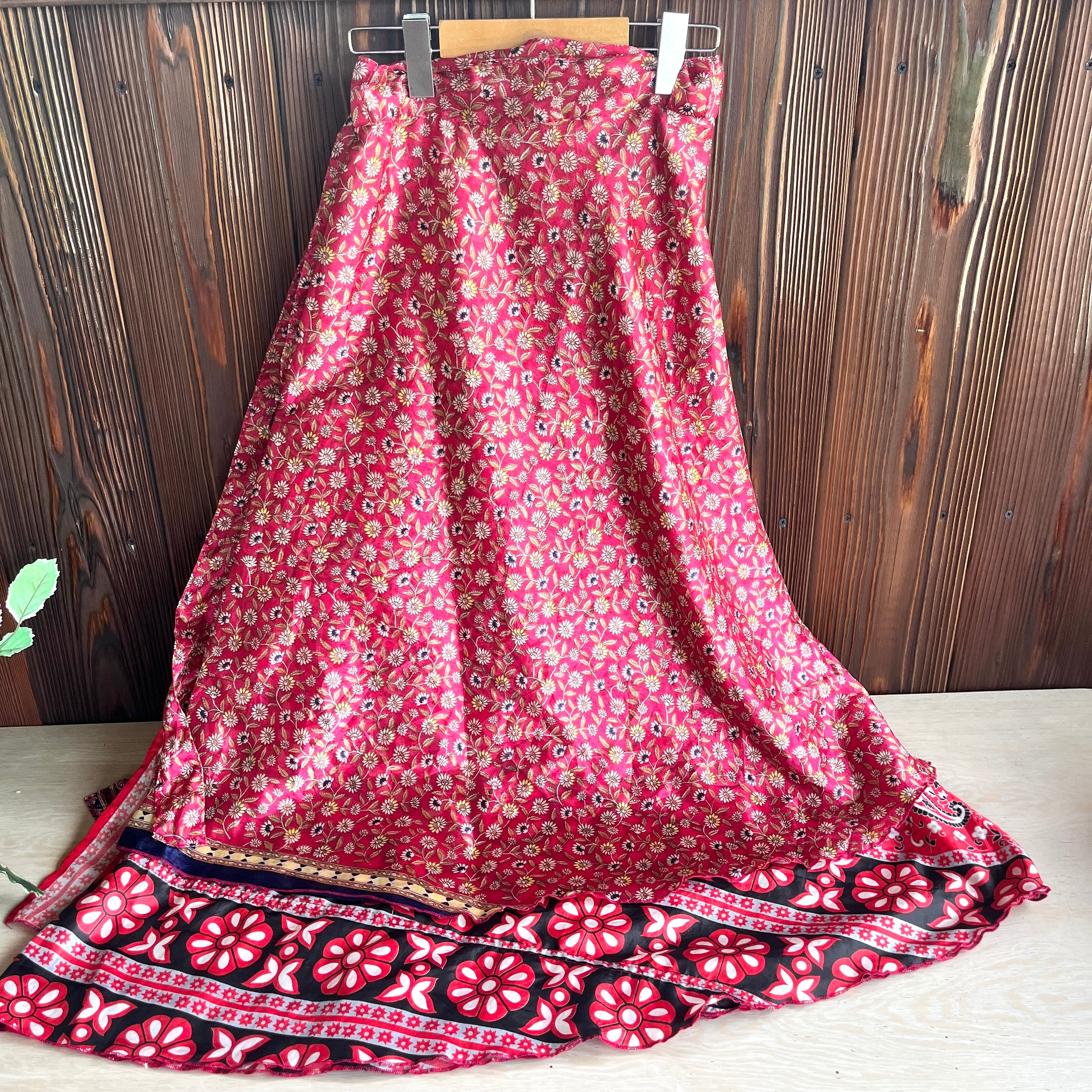 一枚で2通りのコーデが楽しめる、リバーシブルインドサリー巻きスカートです。