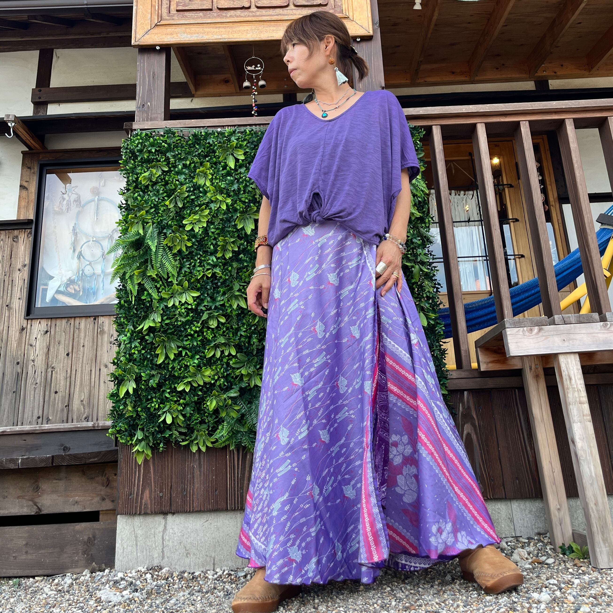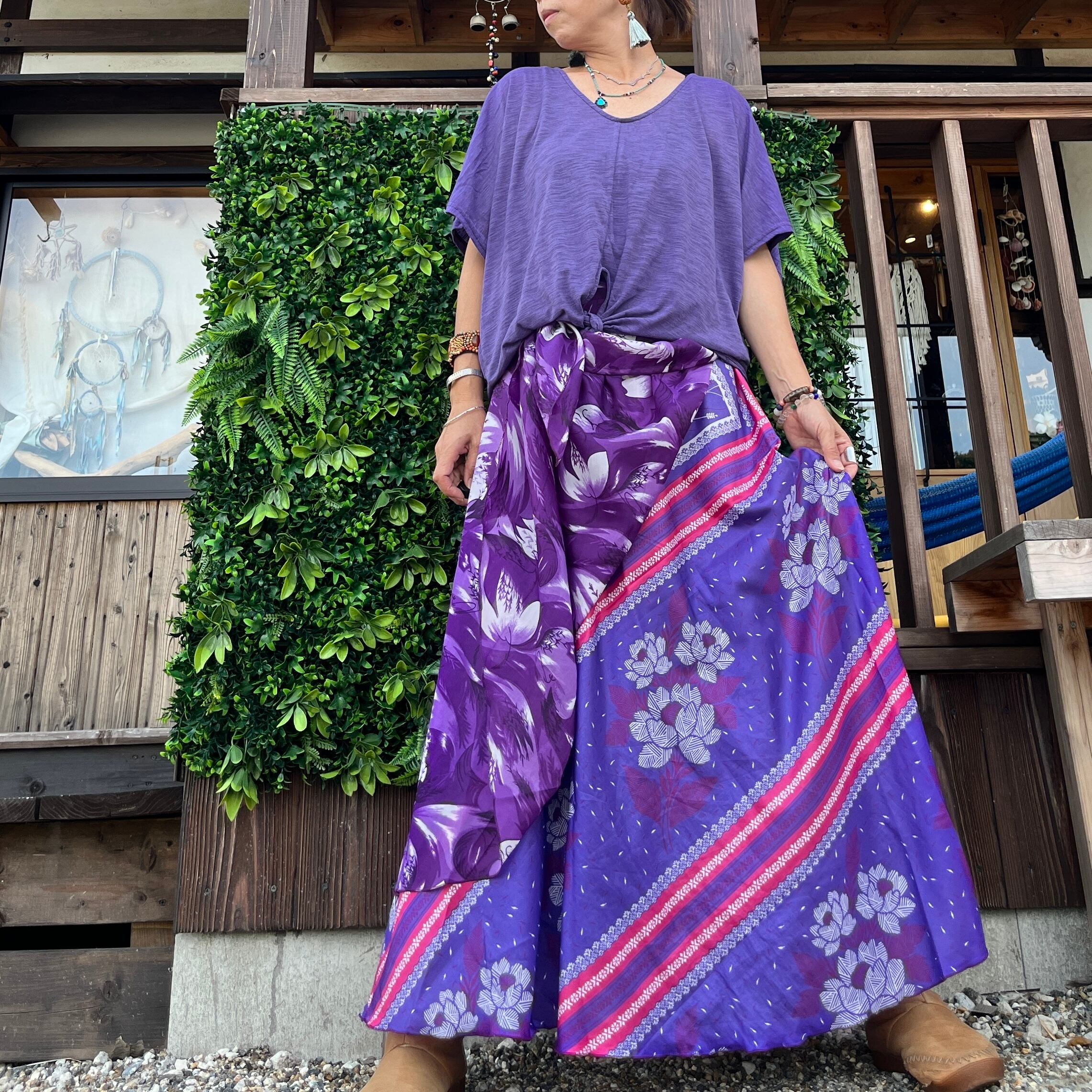 一枚で2通りのコーデが楽しめる、リバーシブルインドサリー巻きスカートです。