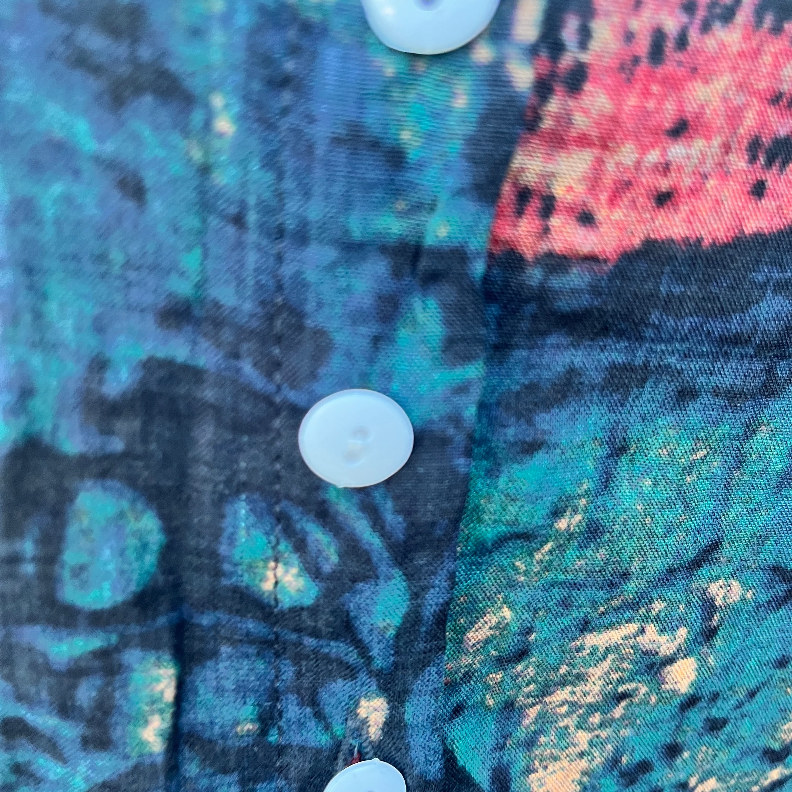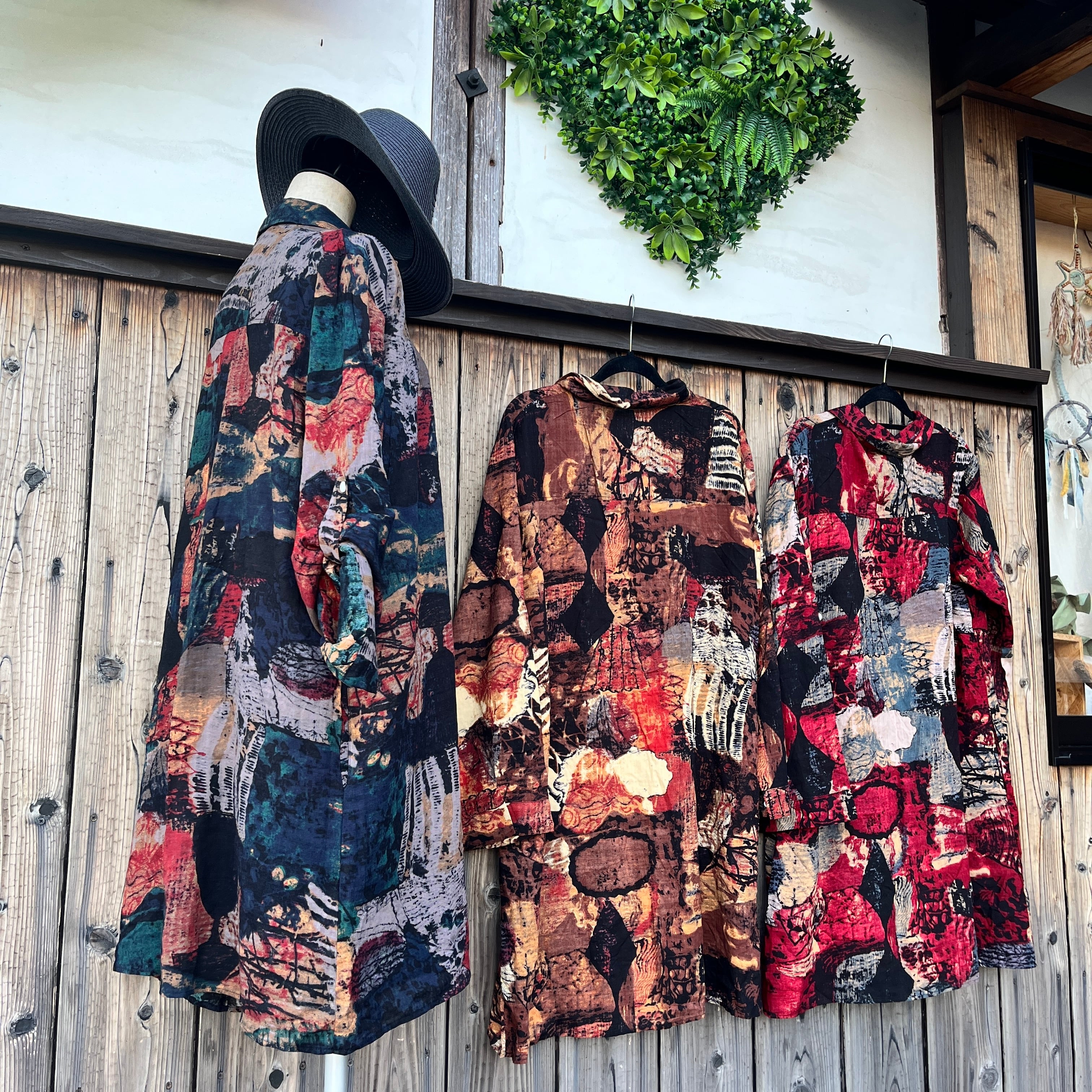 ユニークなグラフィック柄が目を引くシャツ! ゆったりとしたシルエットで、カジュアルなスタイルにぴったりです 柔らかな素材感で着心地も良く、シーズンを問わずお楽しみいただけます