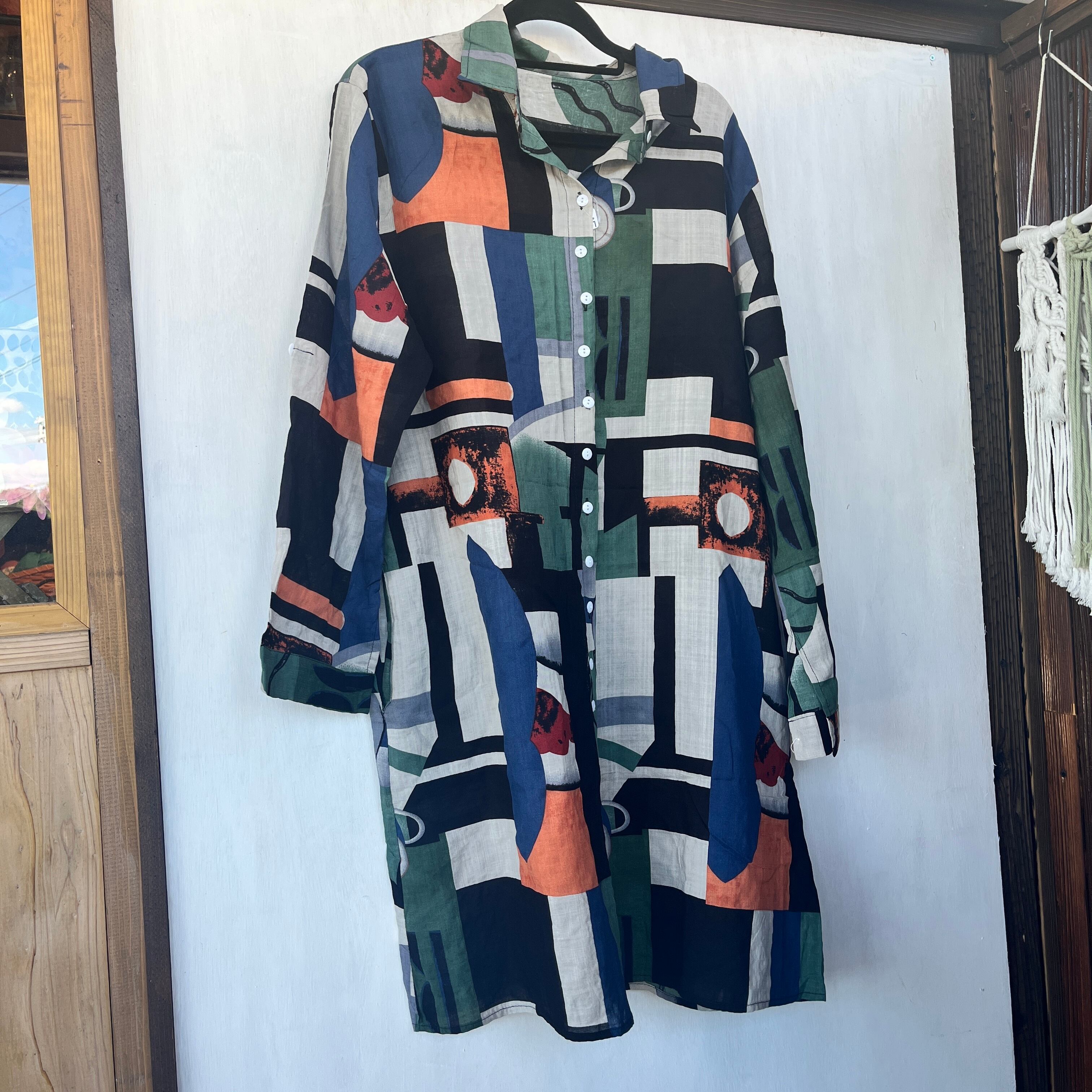 ユニークなグラフィック柄が目を引くシャツ! ゆったりとしたシルエットで、カジュアルなスタイルにぴったりです 柔らかな素材感で着心地も良く、シーズンを問わずお楽しみいただけます
