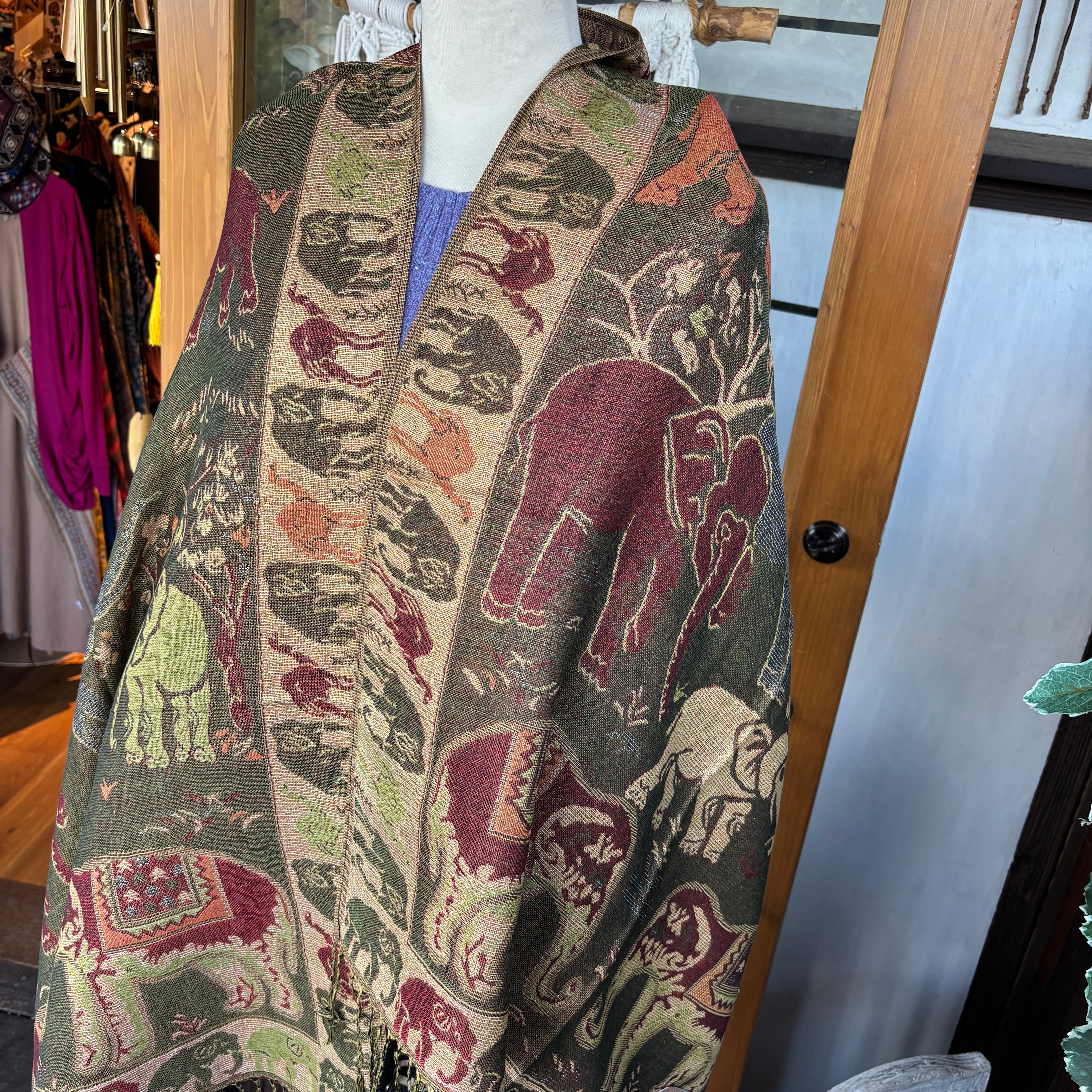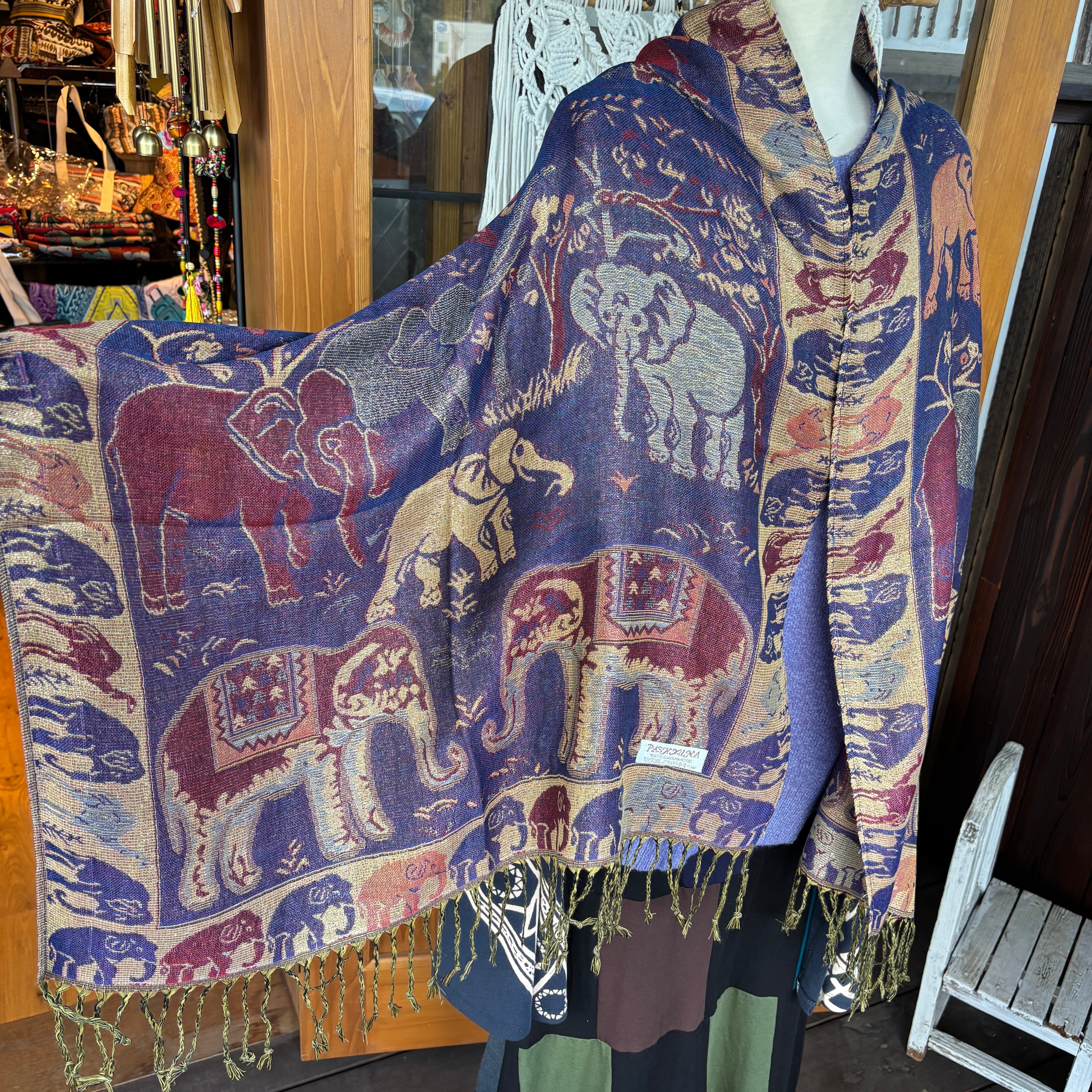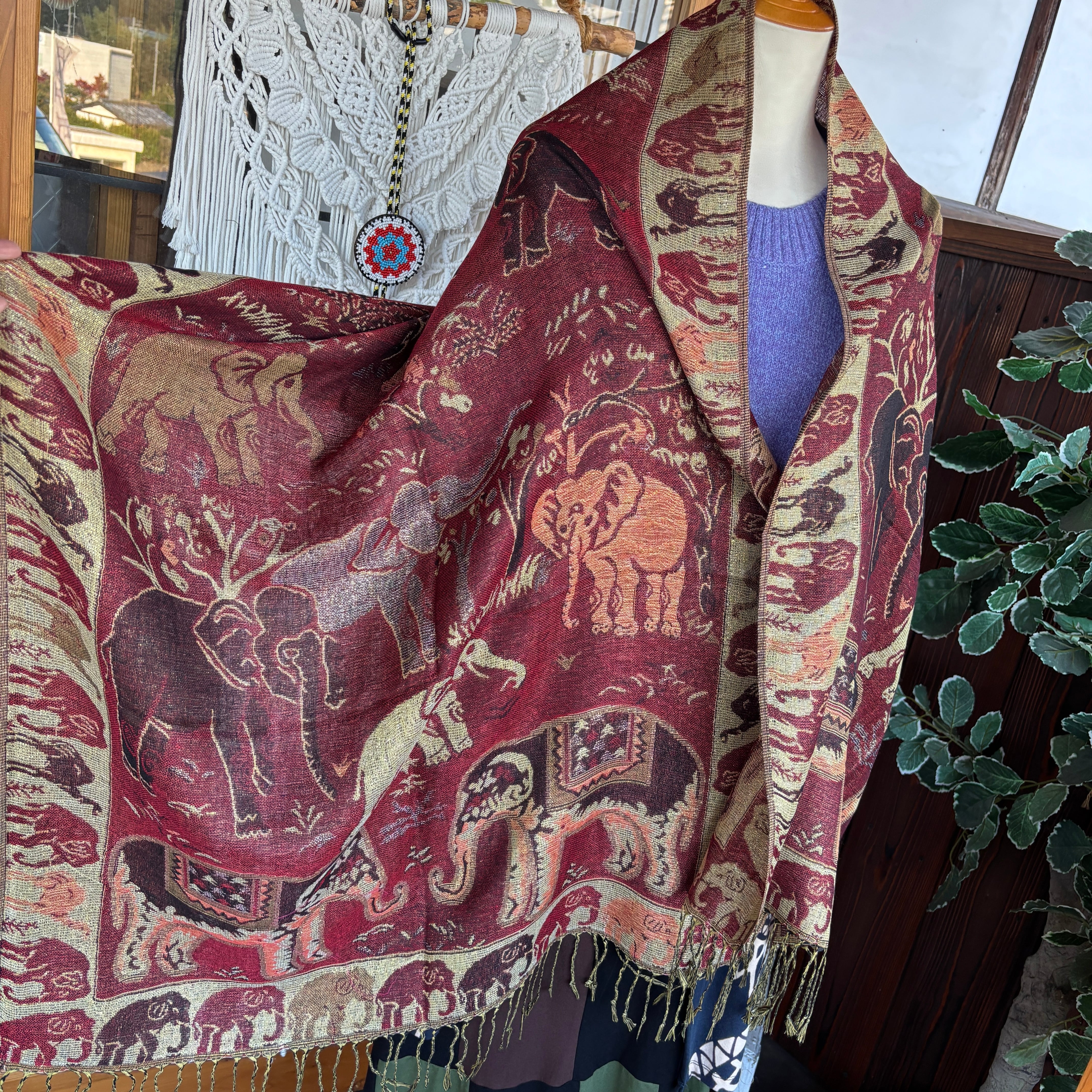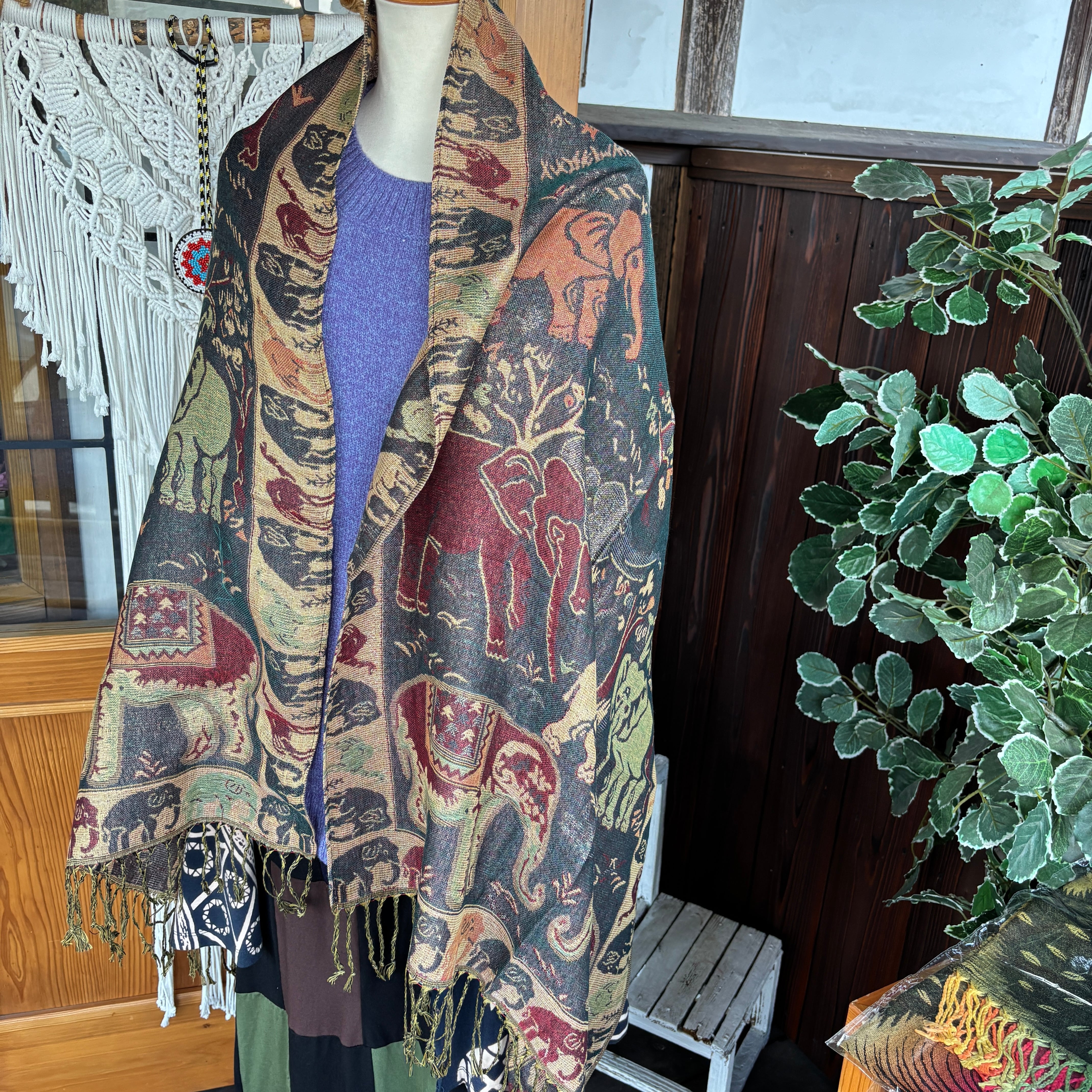 ぞうさん柄がエスニックな雰囲気ですが、しっとりとした質感が大人っぽくエレガントで華やかな印象。