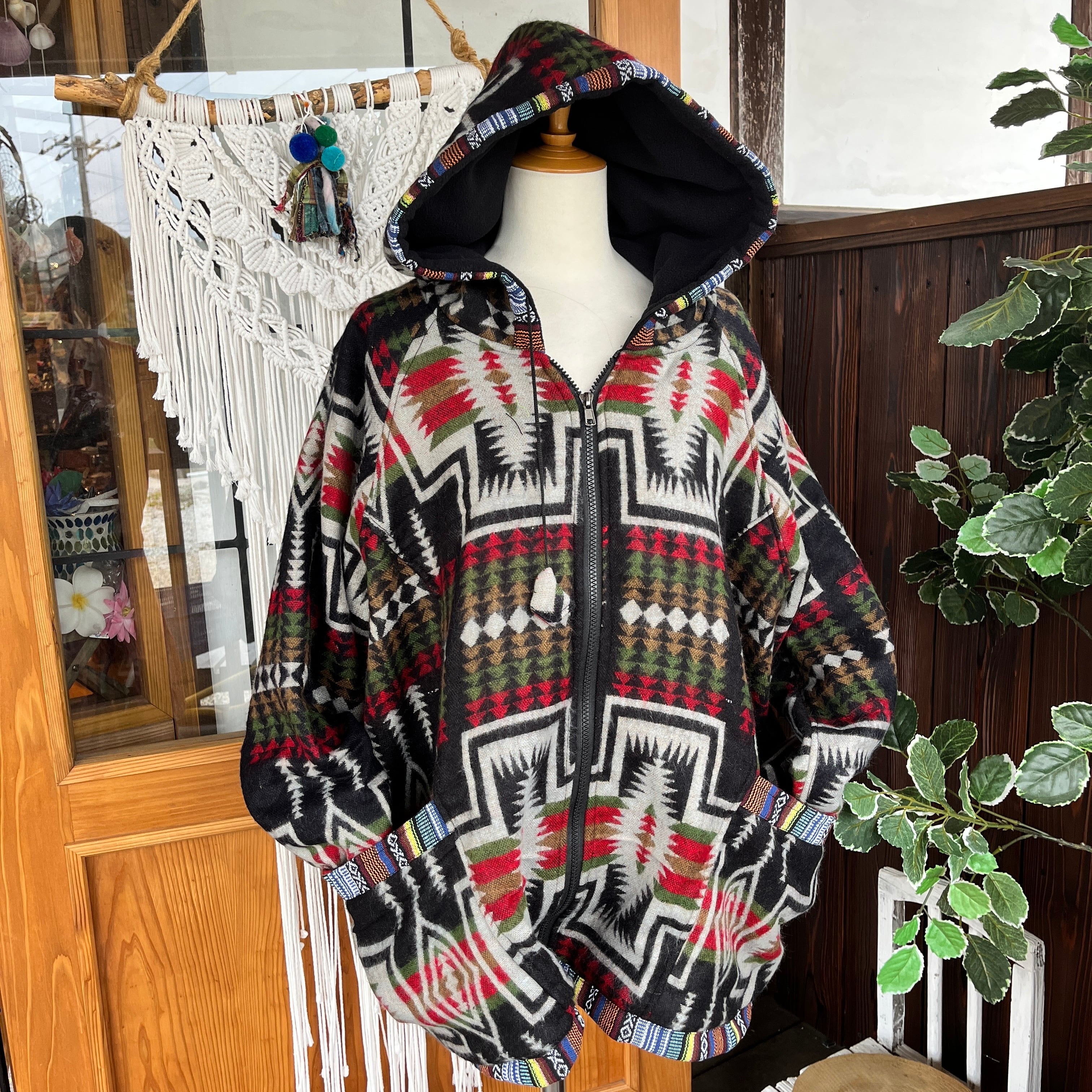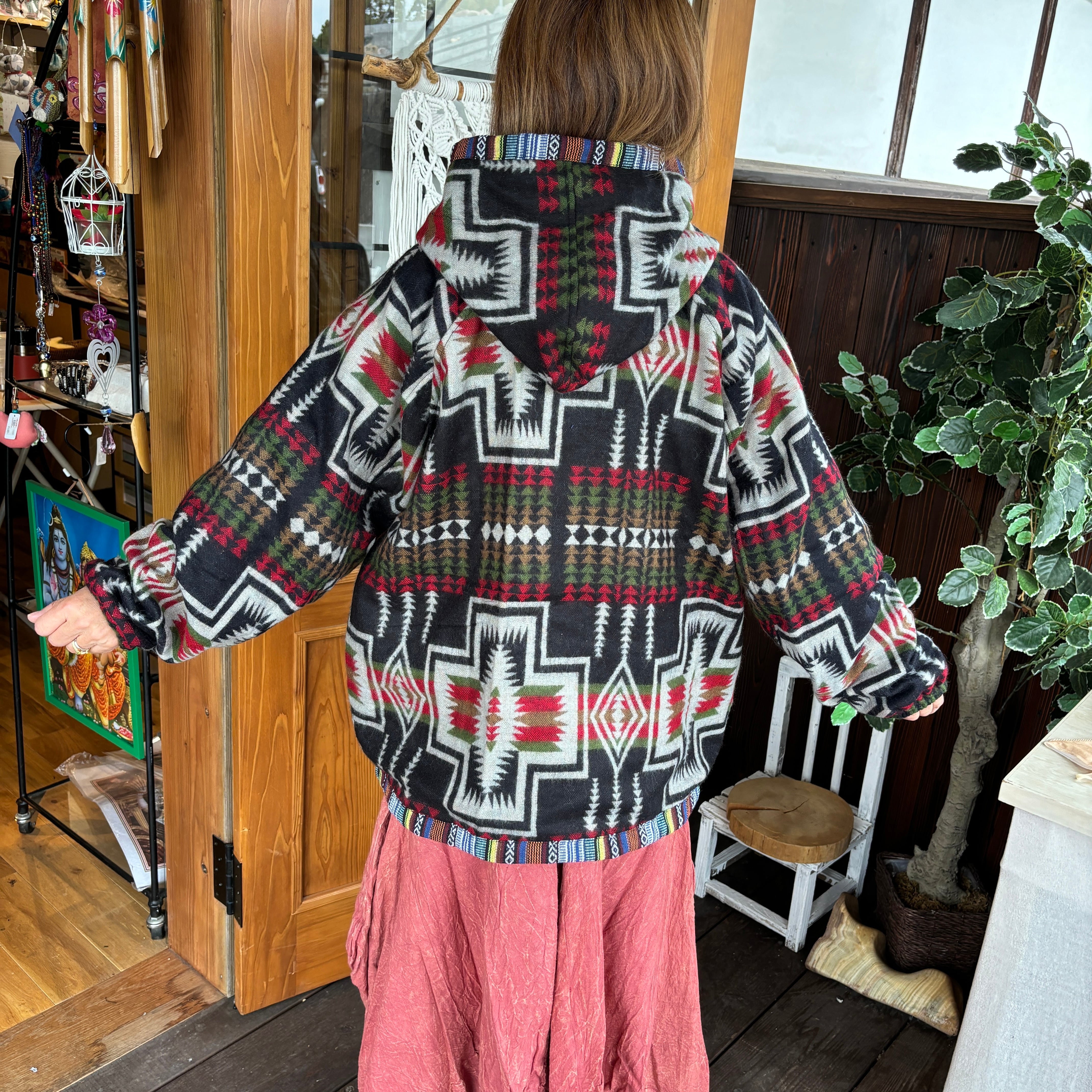 あったかい生地を使ったドルマン袖アウターです。表側のヤクウールは、保温性に優れた素材でありながらも軽くて柔らかい触り心地が特徴です。