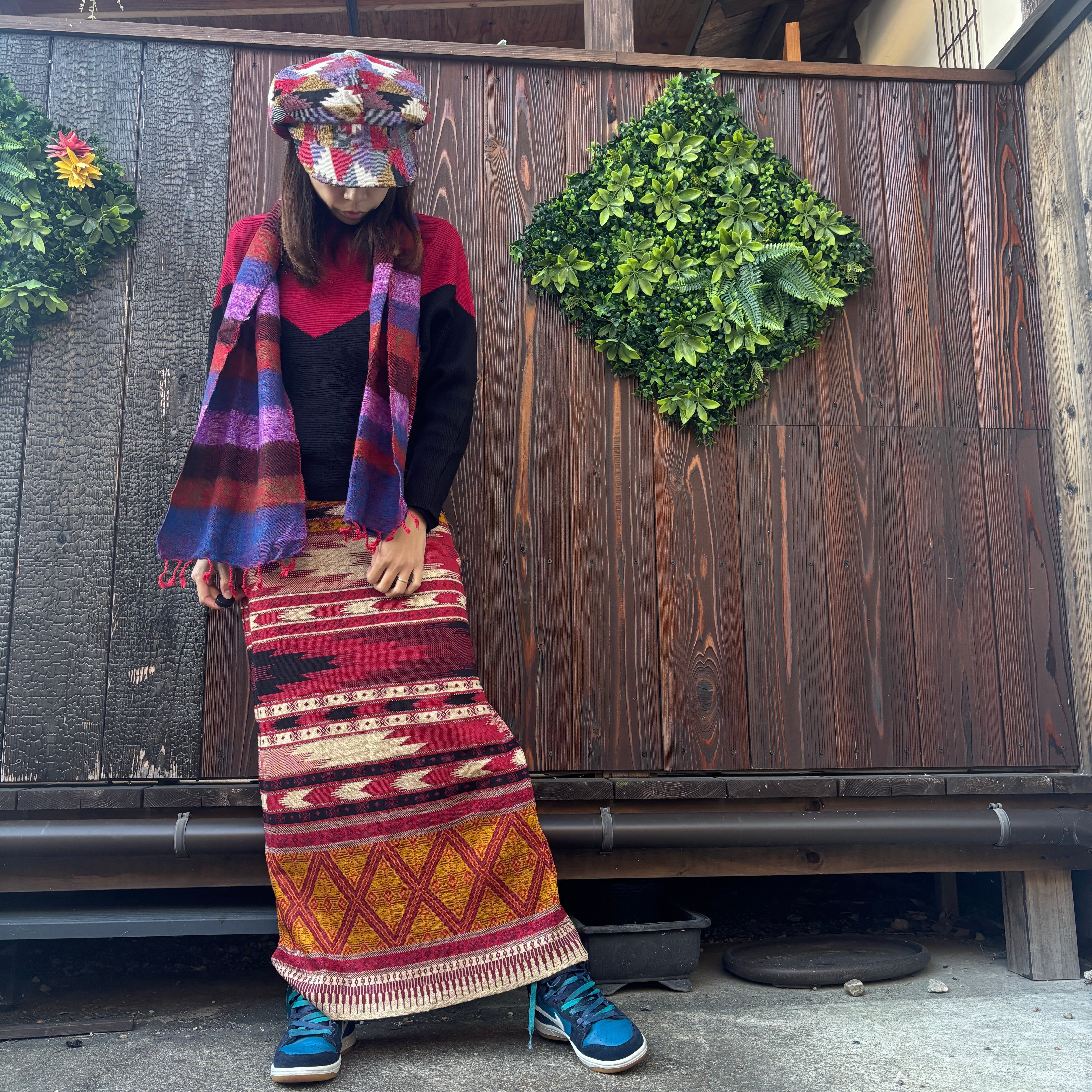 ネイティブな印象を与えるオルテガ柄が特徴で、シンプルなトップスとも相性抜群!