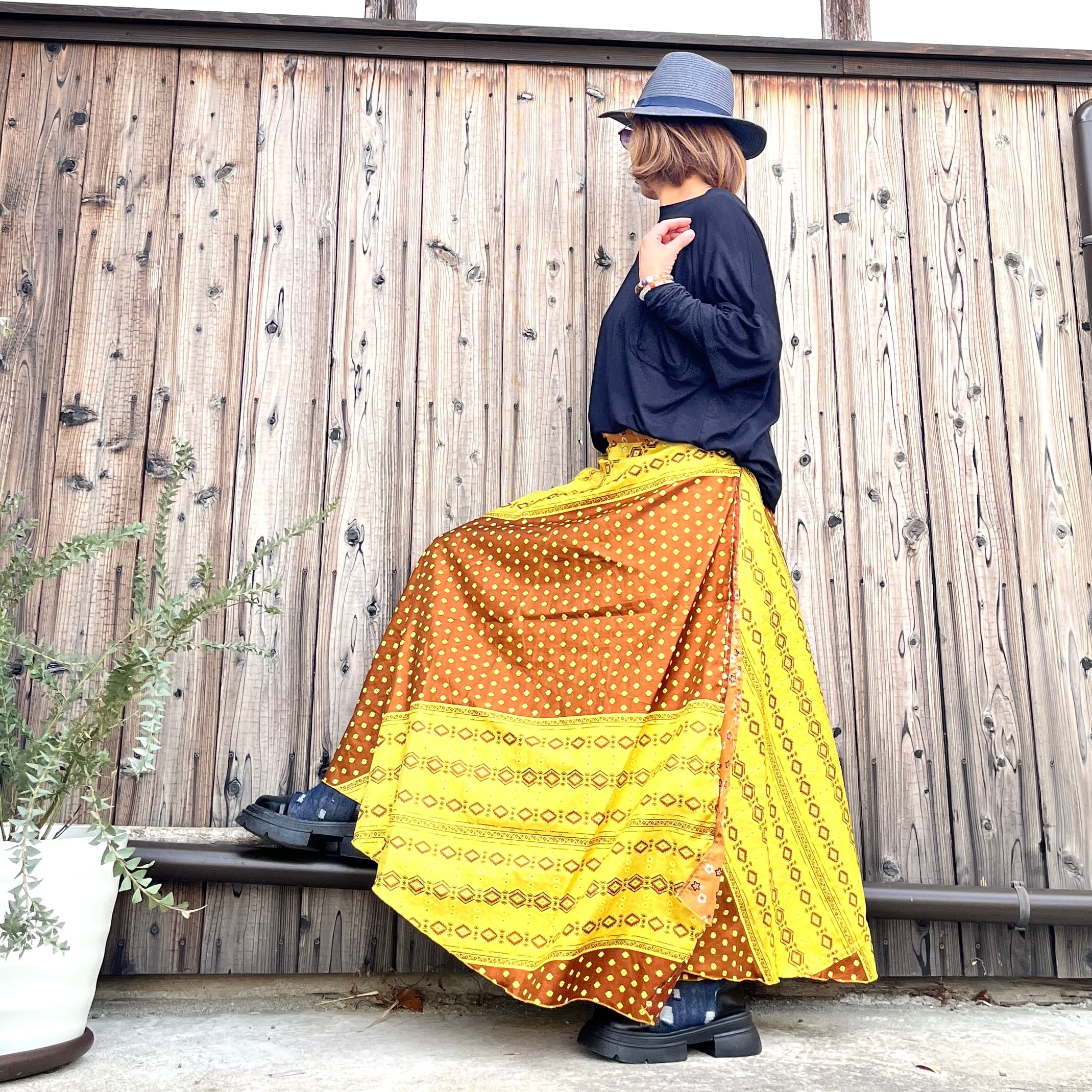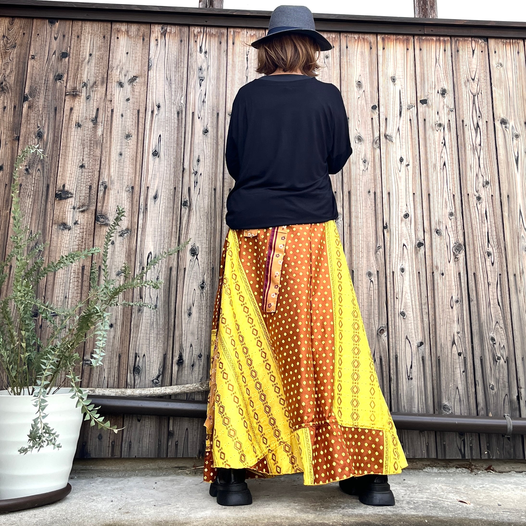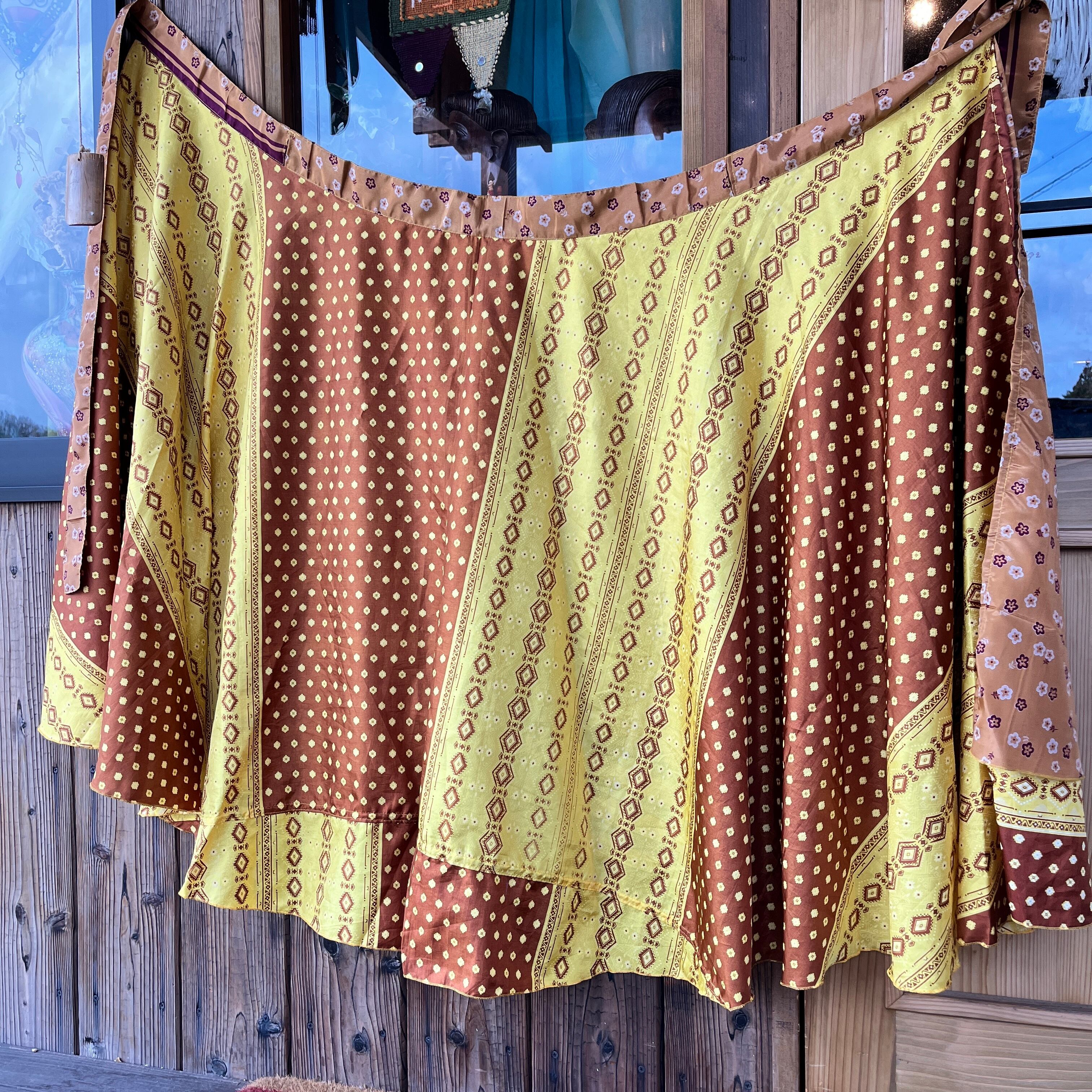 一枚で2通りのコーデが楽しめる、リバーシブルインドサリー巻きスカートです。
