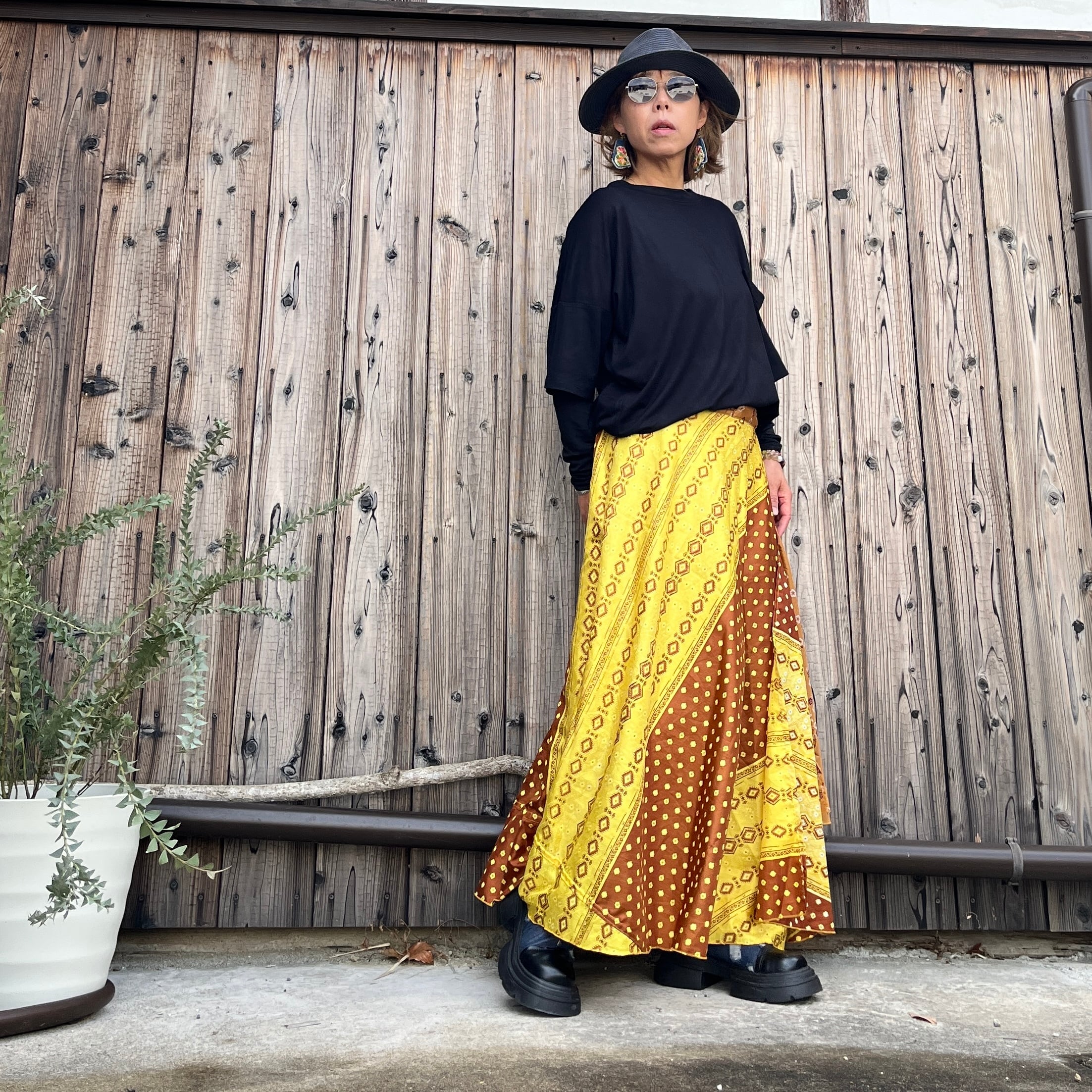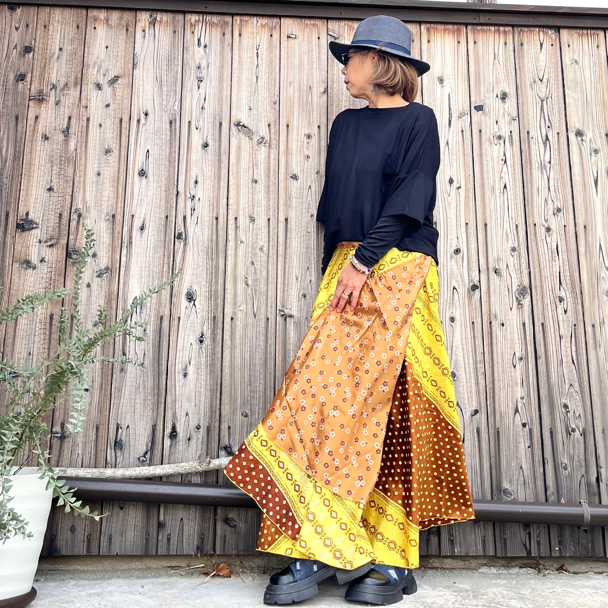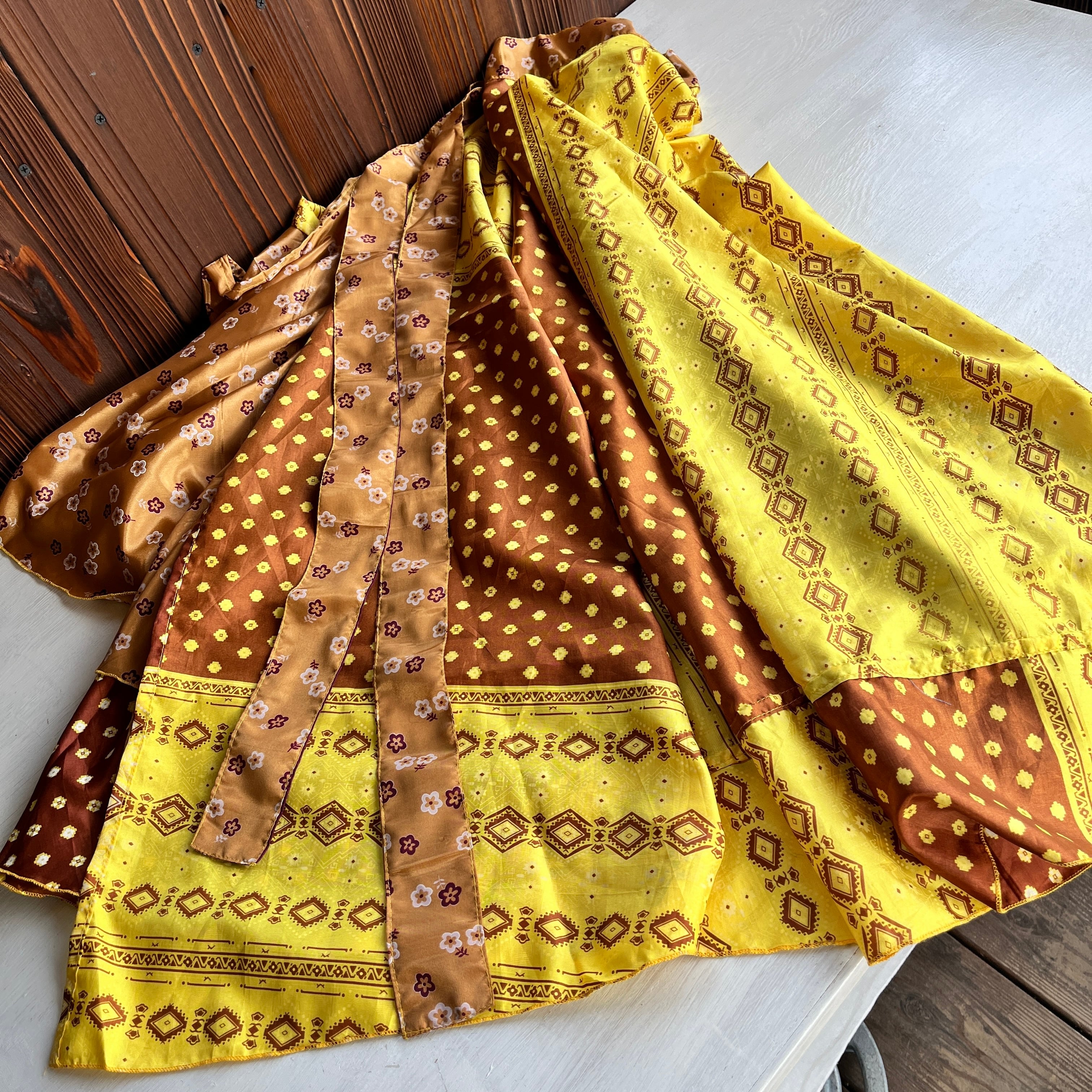 一枚で2通りのコーデが楽しめる、リバーシブルインドサリー巻きスカートです。